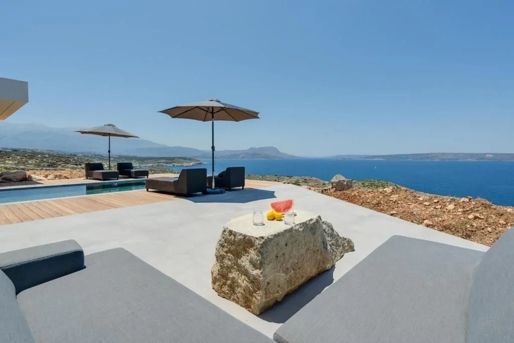 Nestled near the traditional village of Kokkino Chorio, in one of the most picturesque areas of Chania, Villa Crete is a striking modern residence that combines architectural elegance, absolute privacy, and panoramic views of the Cretan Sea. Located just 300 meters from the pristine beach of Koutalas and 23 km from Chania International Airport, the villa offers the perfect balance between tranquility and accessibility.