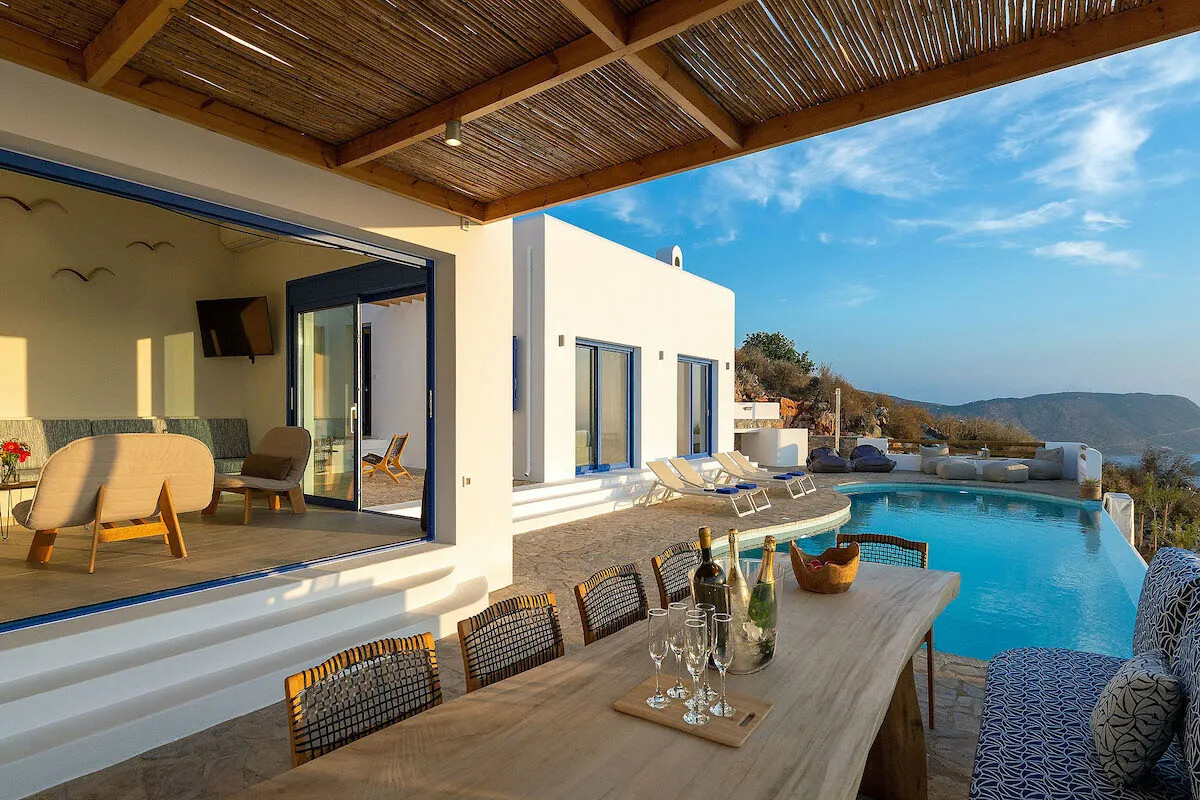 Experience the essence of Greek island living in Villa , where luxury meets tranquility.