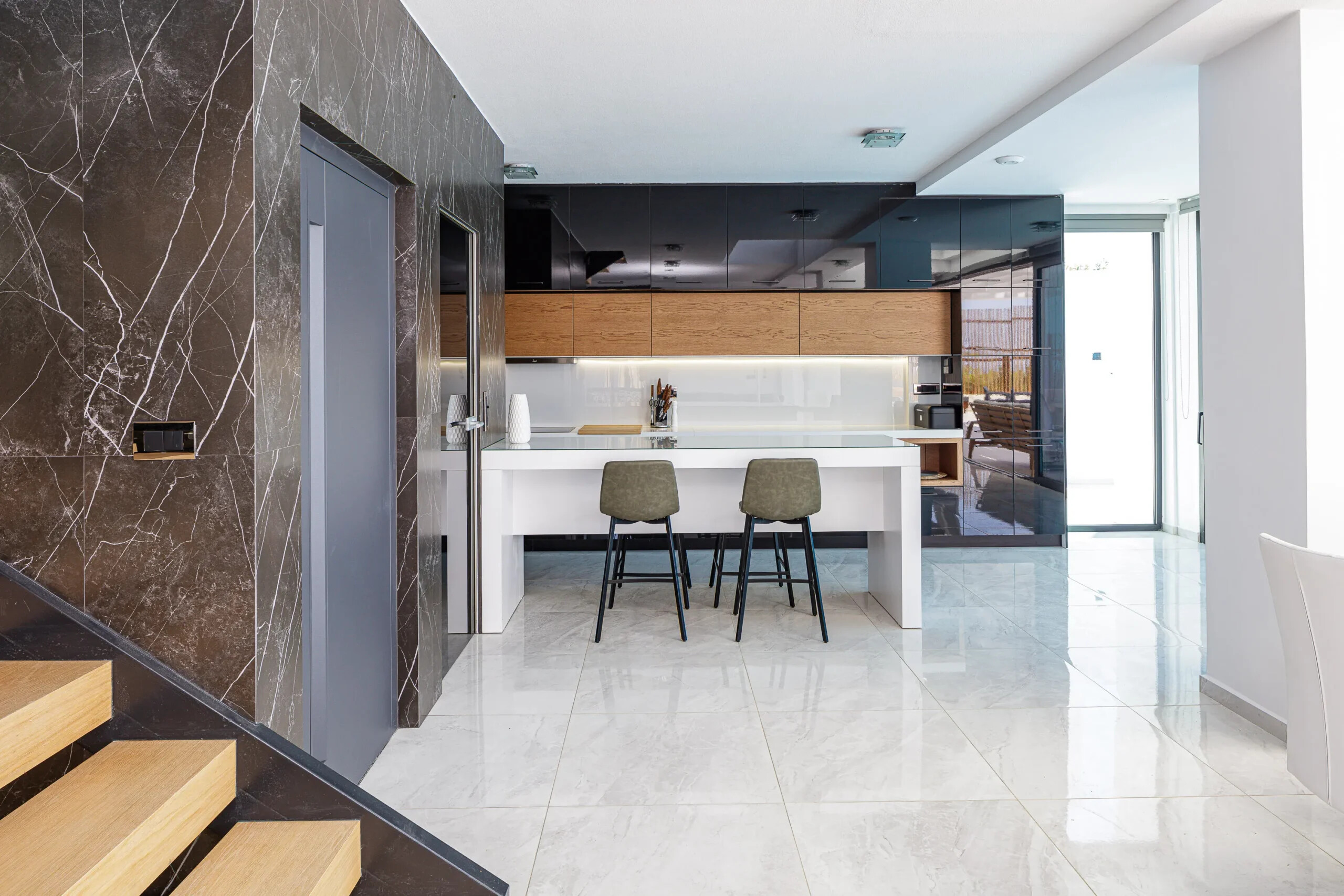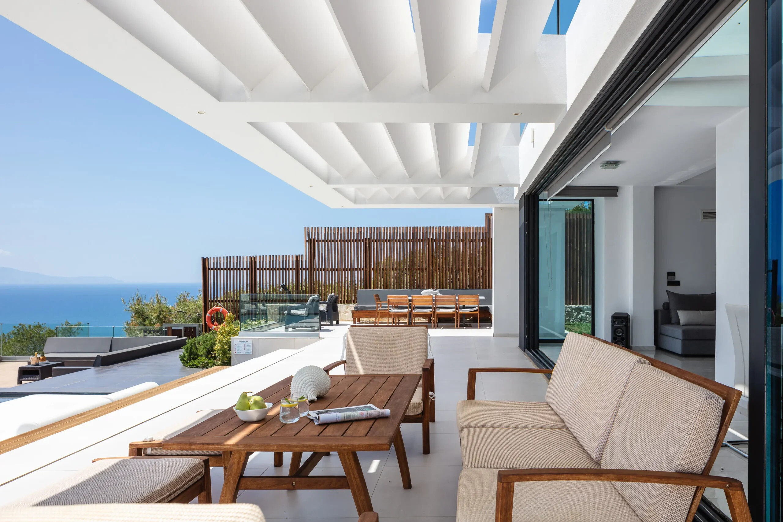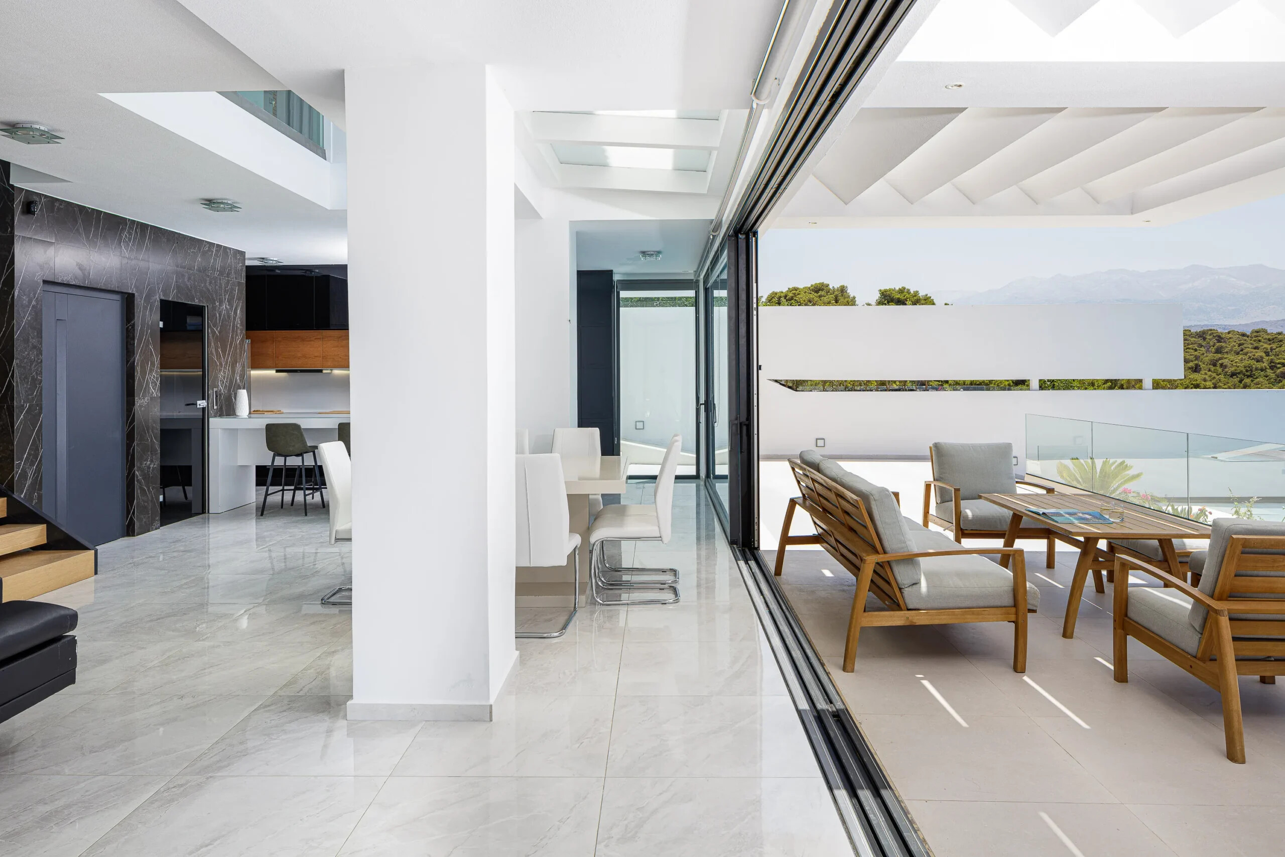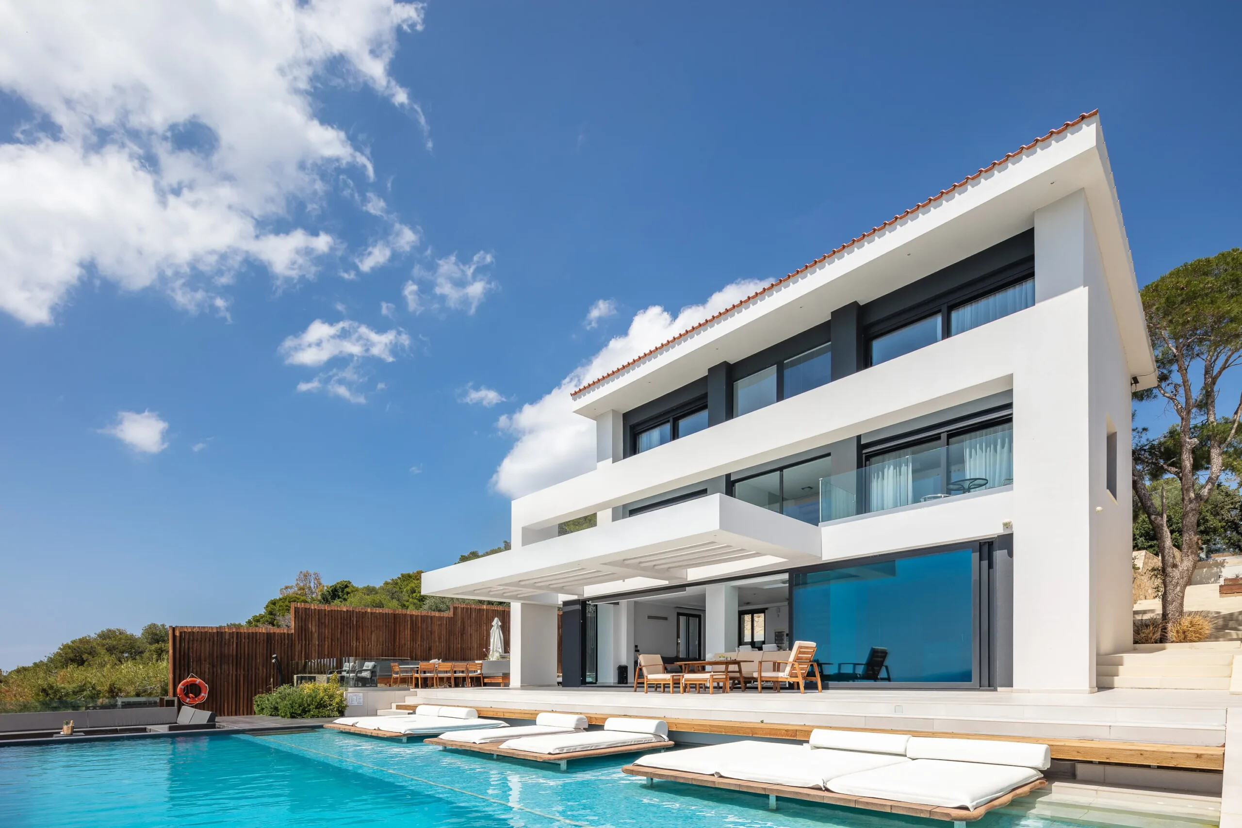 The villa’s design allows abundant natural light, while its large openings frame the spectacular surroundings at every angle.