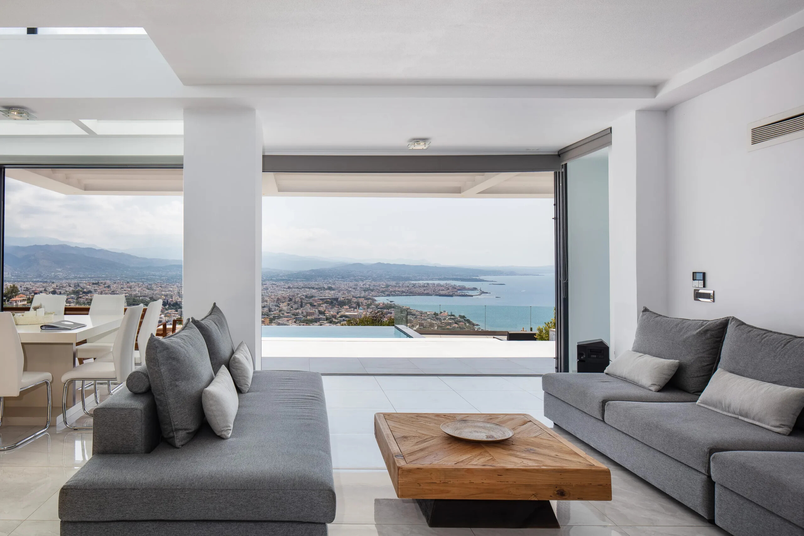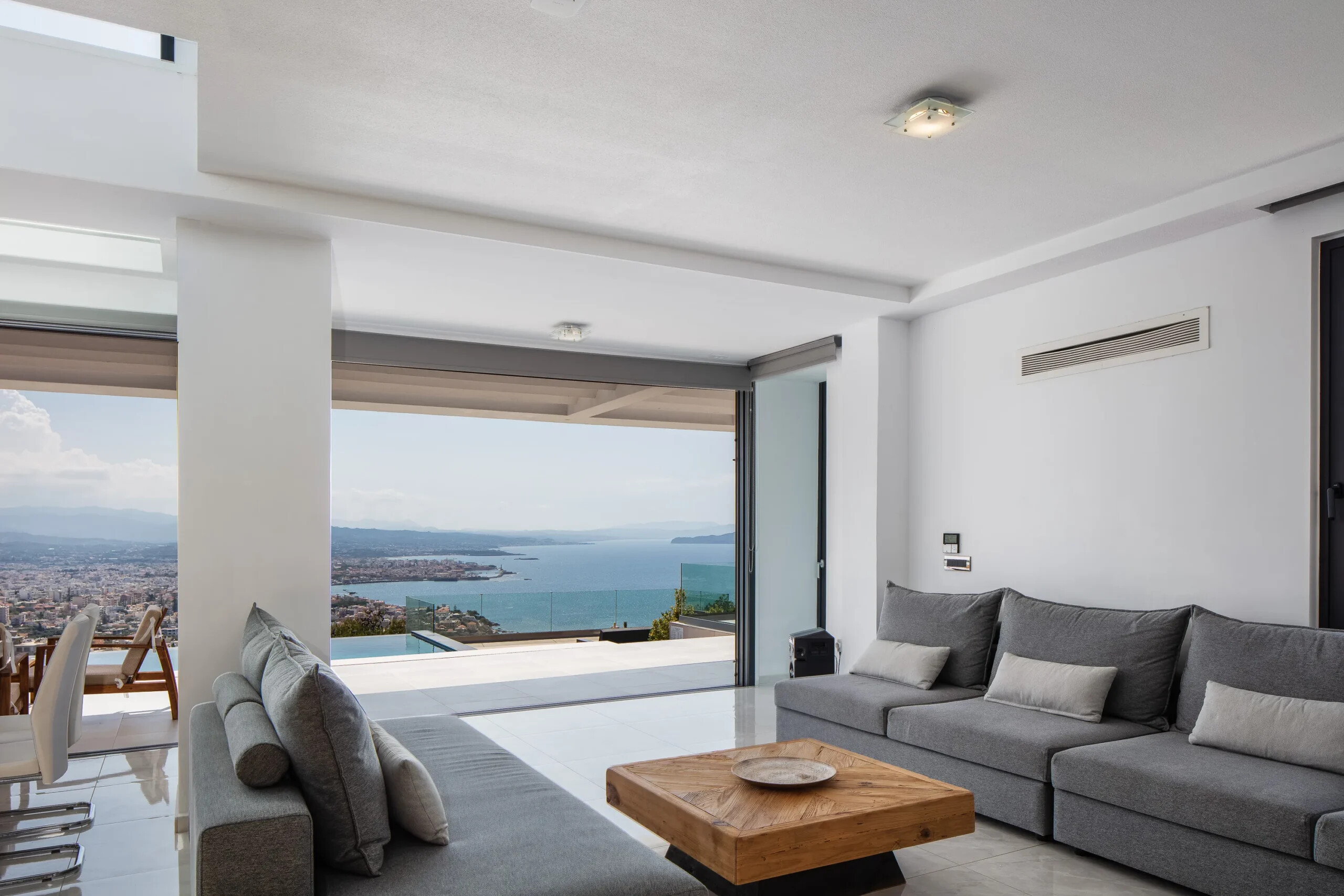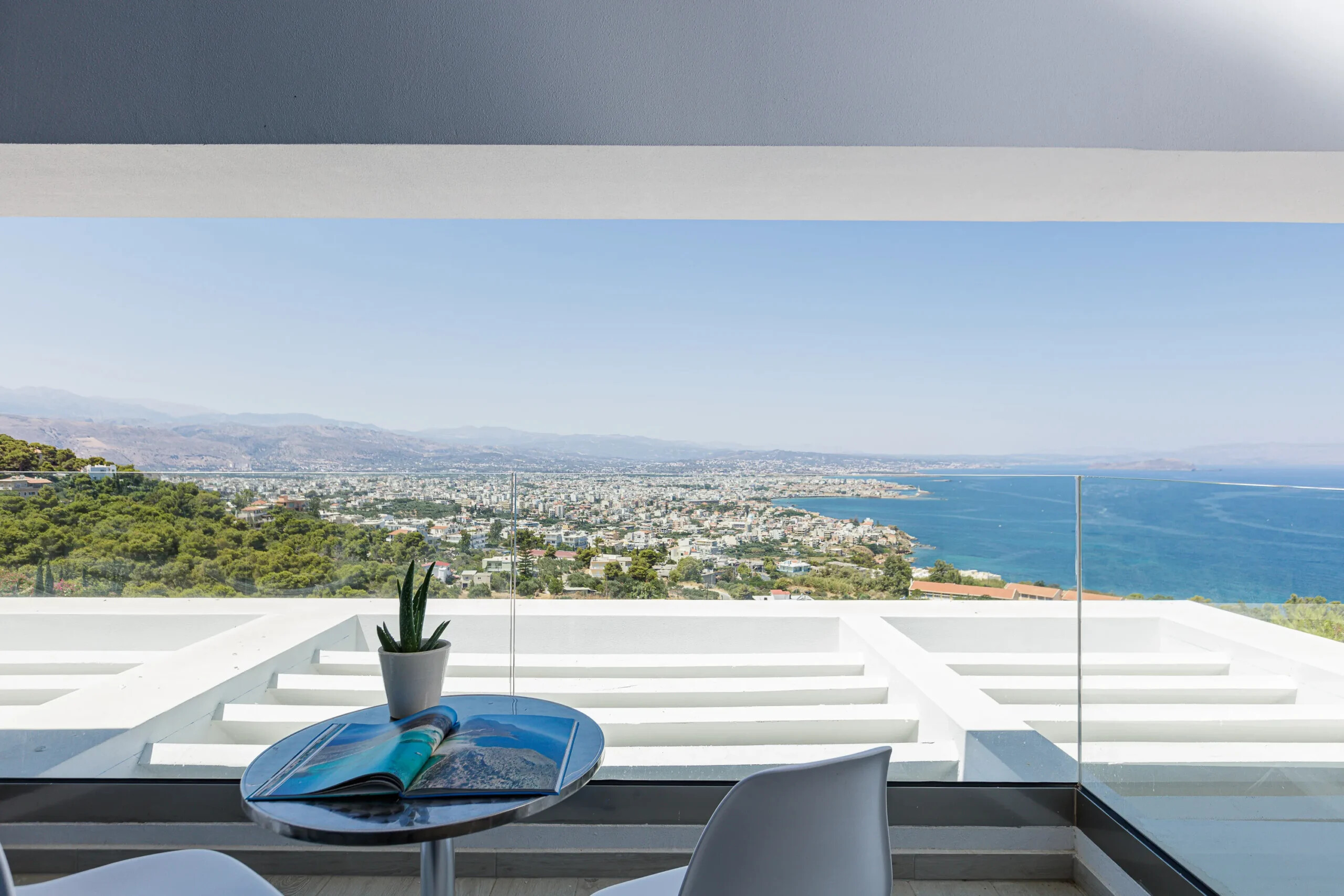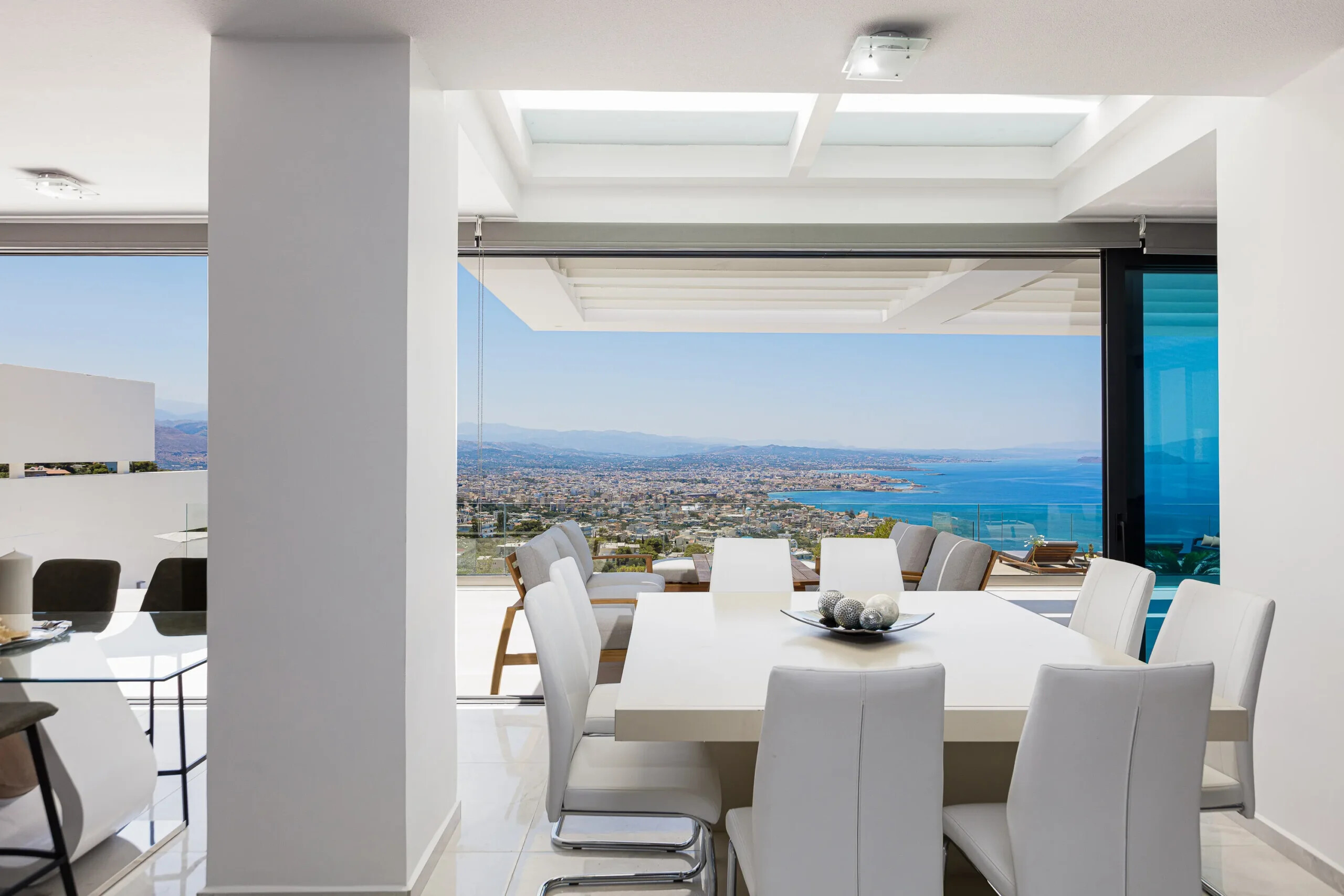 Located in one of Chania’s most prestigious suburbs, this immaculate 210 m² villa offers a perfect combination of modern elegance, comfort, and breathtaking panoramic views of the Aegean Sea, the White Mountains, and the city’s enchanting skyline.