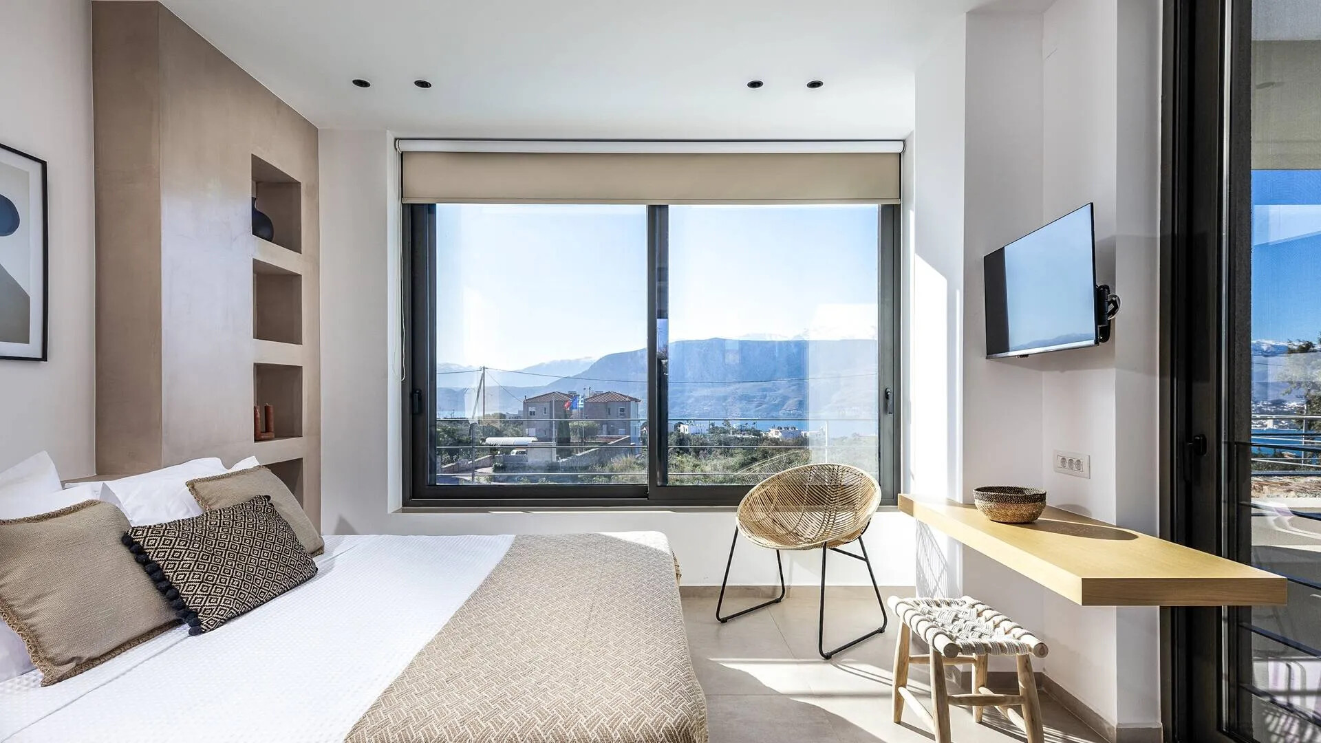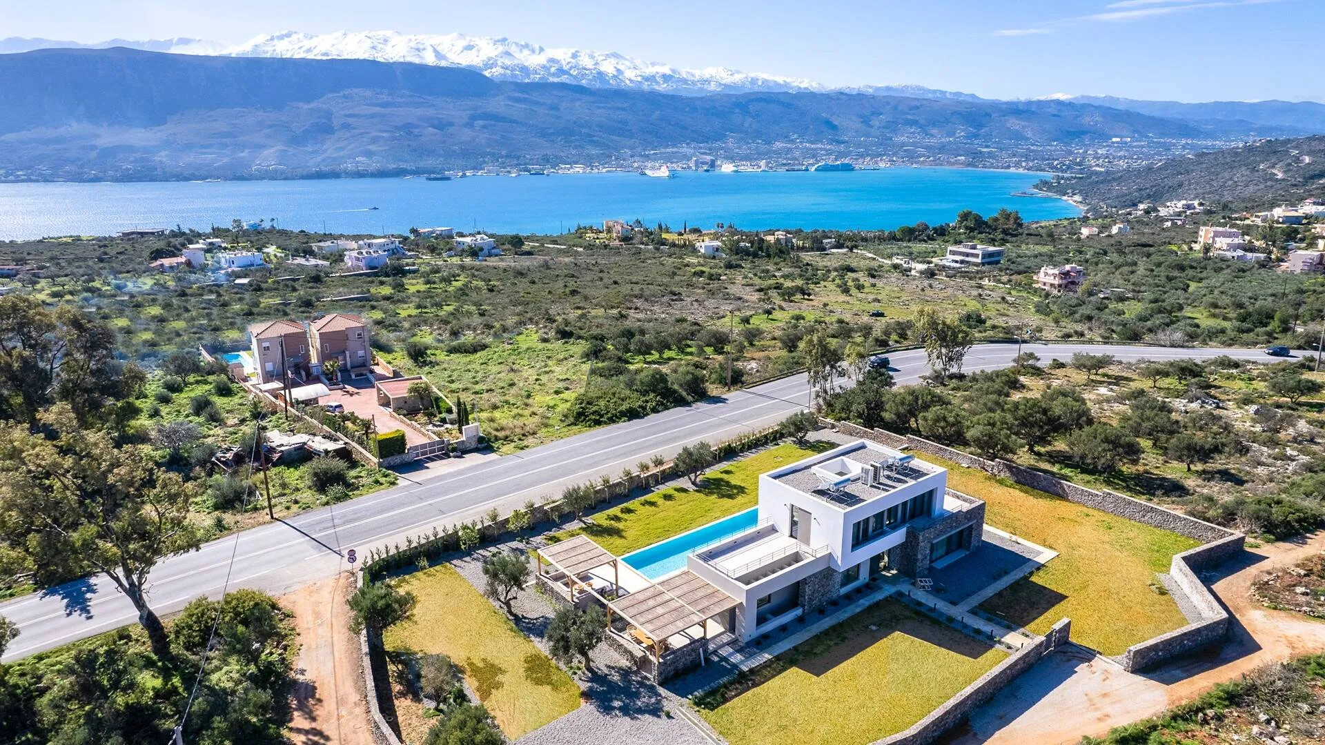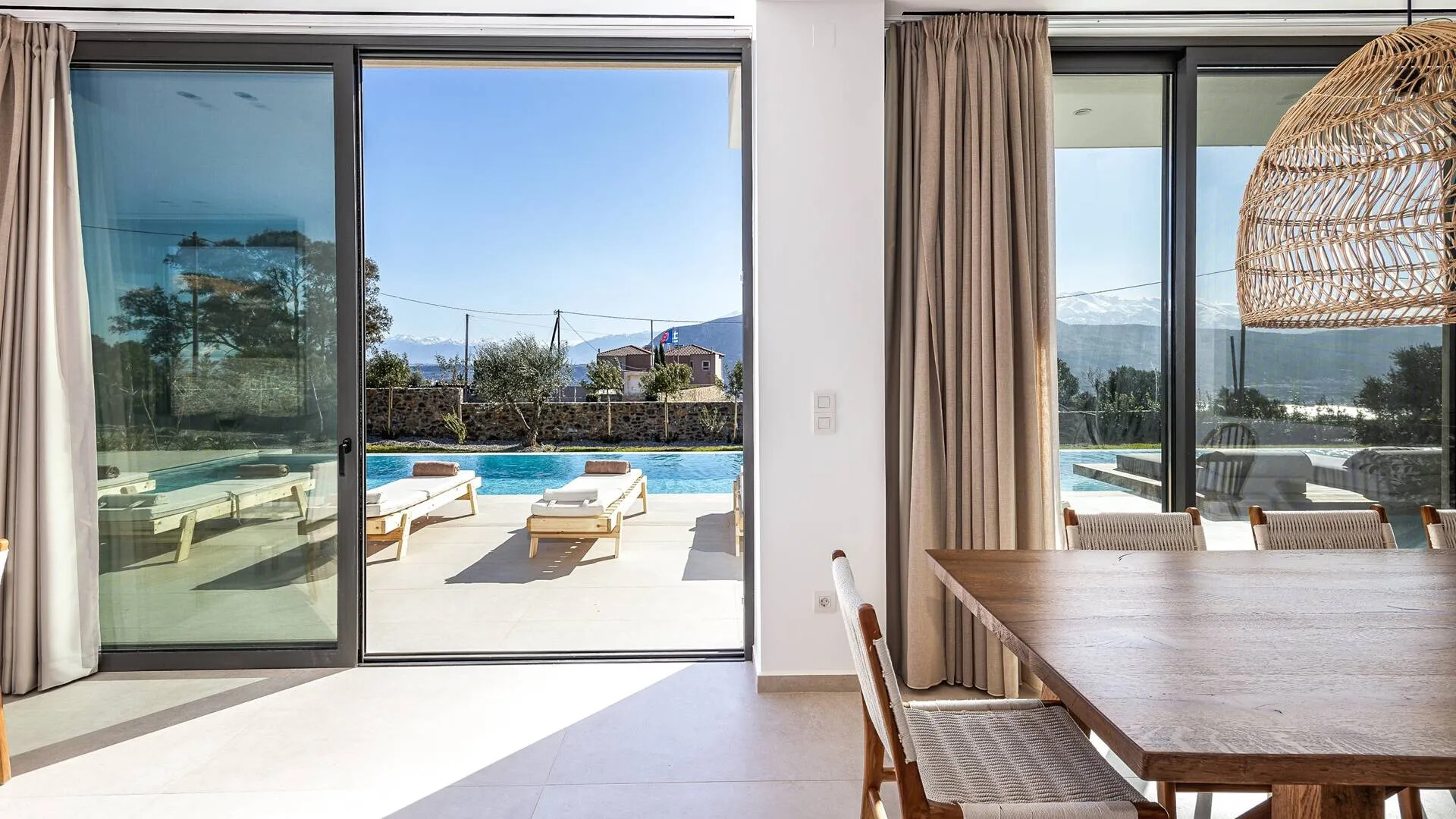 Nestled on the scenic hillsides of Akrotiri overlooking the breathtaking Souda Bay, this newly constructed luxury villa (built in 2022) is a rare coastal gem. Blending modern architecture with Boho-chic interior design, this upscale residence offers uninterrupted views of the White Mountains and the Aegean Sea, with glass facades flooding the interiors with light and elegance.