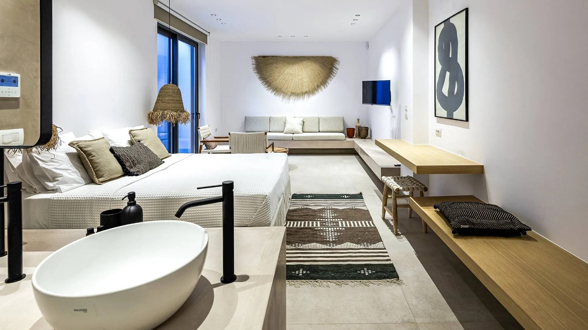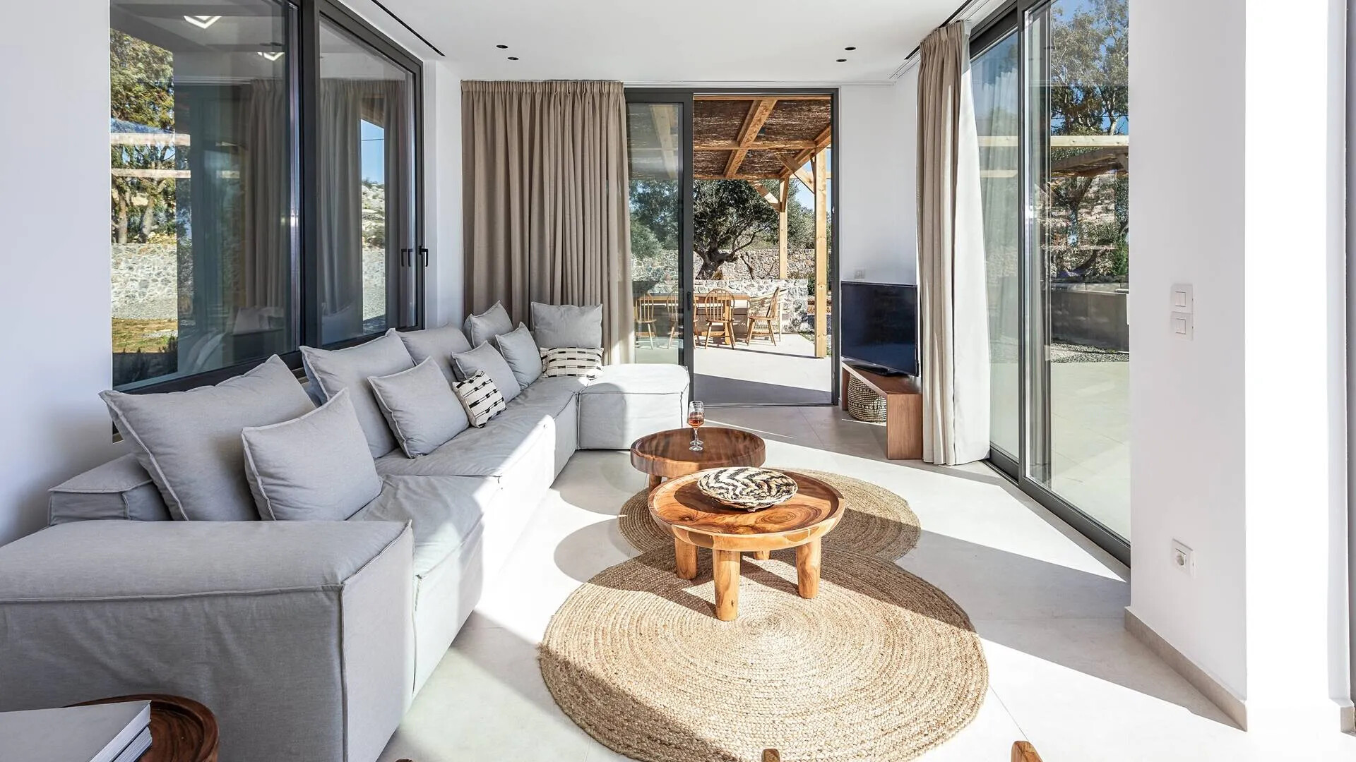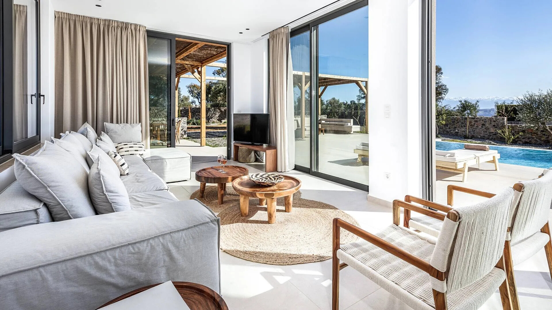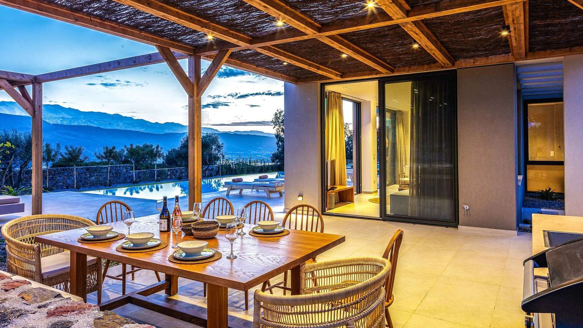 Nestled on the scenic hillsides of Akrotiri overlooking the breathtaking Souda Bay, this newly constructed luxury villa (built in 2022) is a rare coastal gem. Blending modern architecture with Boho-chic interior design, this upscale residence offers uninterrupted views of the White Mountains and the Aegean Sea, with glass facades flooding the interiors with light and elegance.