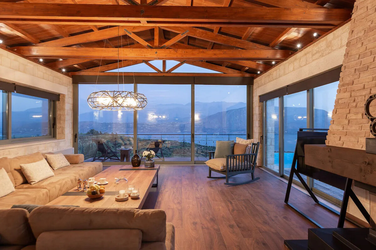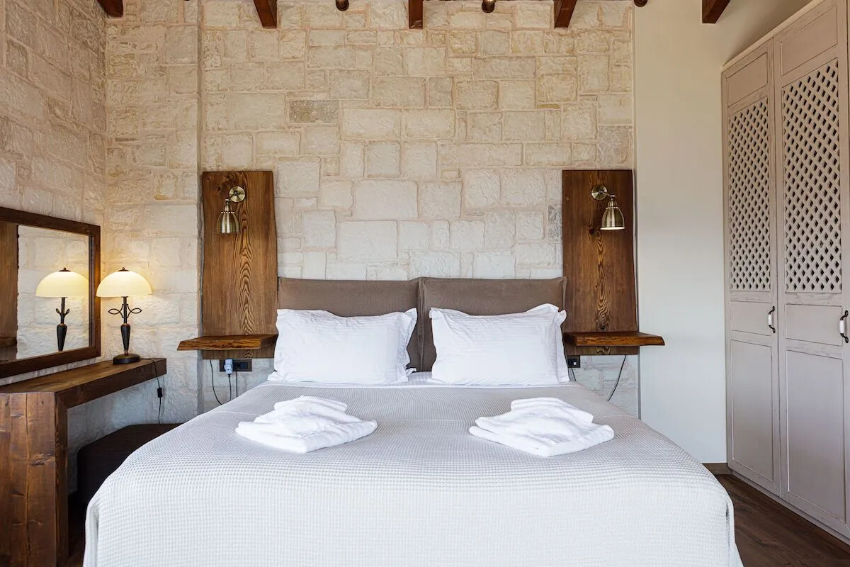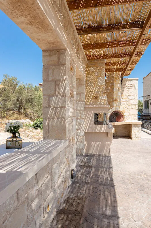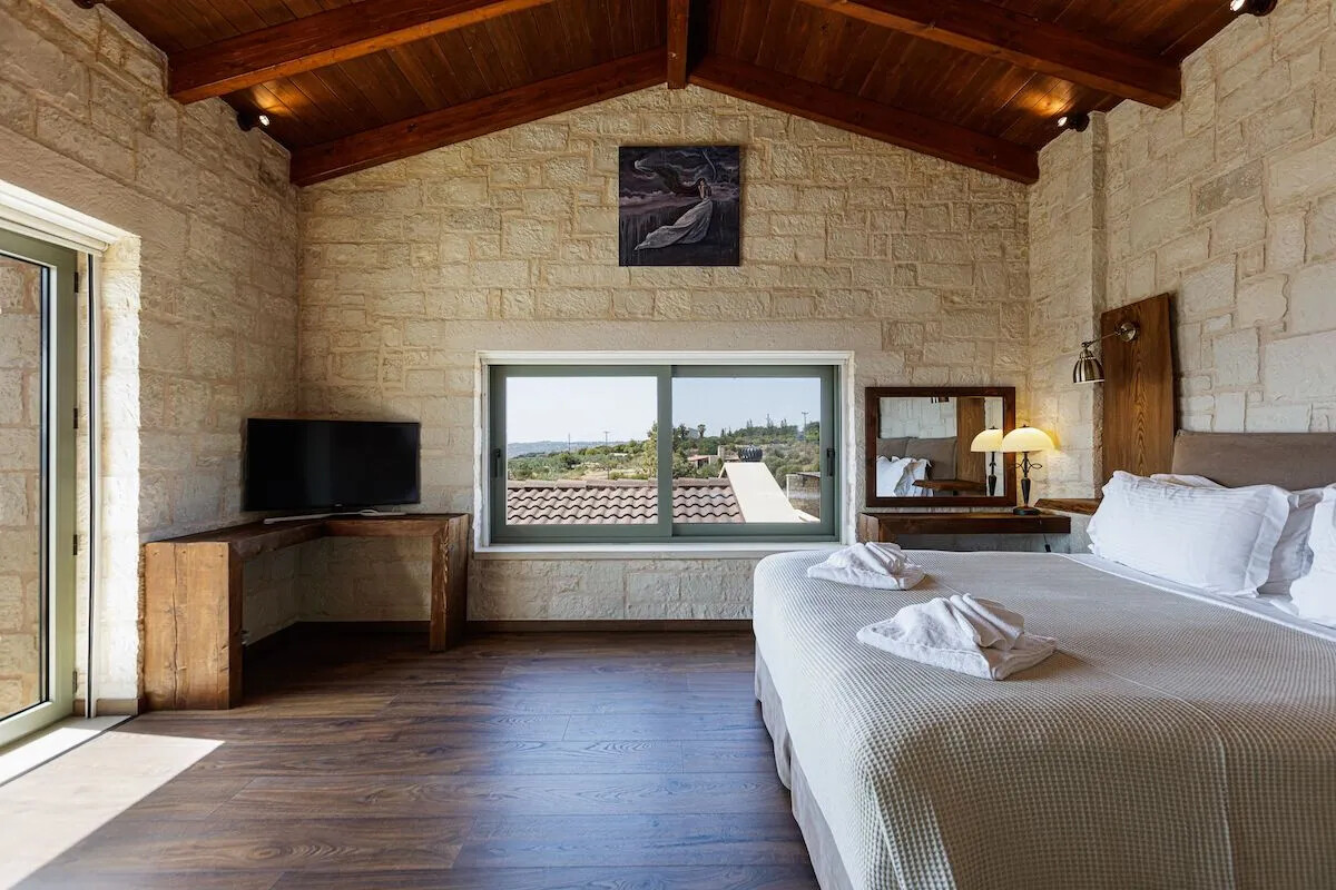 The Villa is an amazing stone-made property, with luxurious furnishings, which offers all contemporary amenities. The wooden floors, ceiling and earthly colors of the decoration add a homely, soothing touch, as all materials were meticulously chosen in order not to reflect the sun, causing glazes.