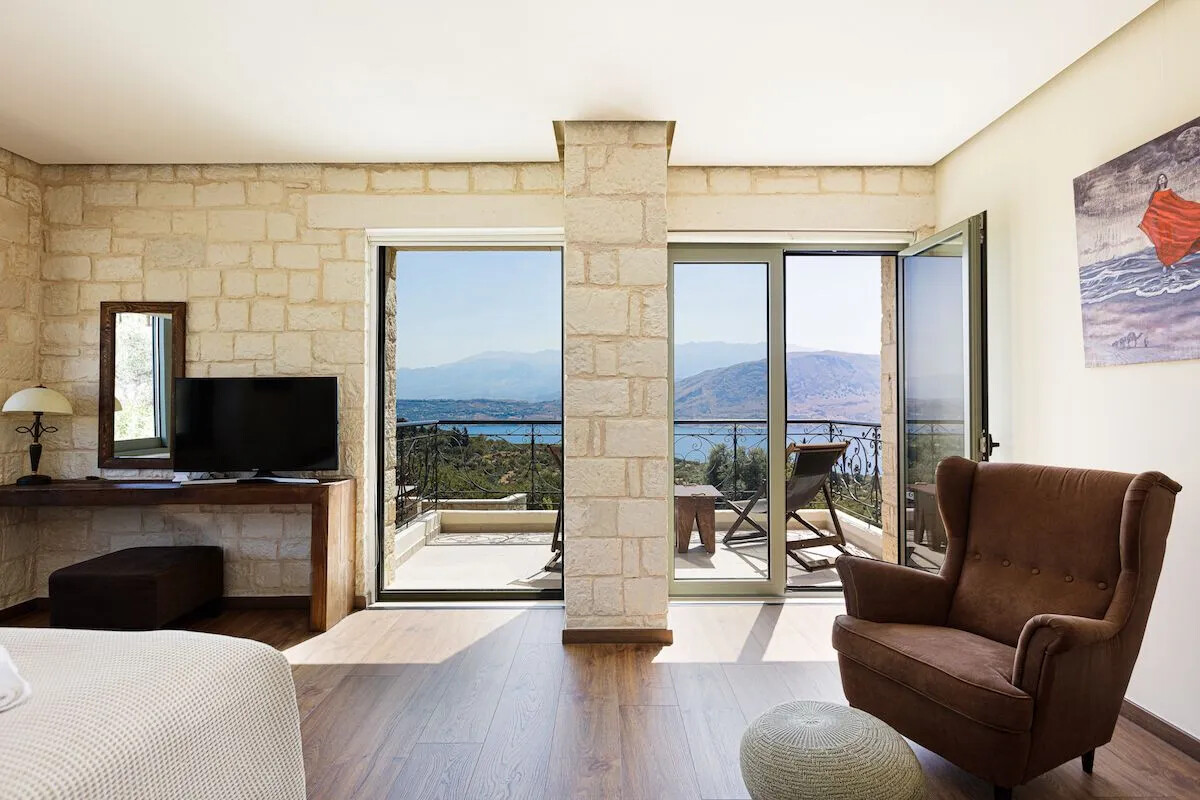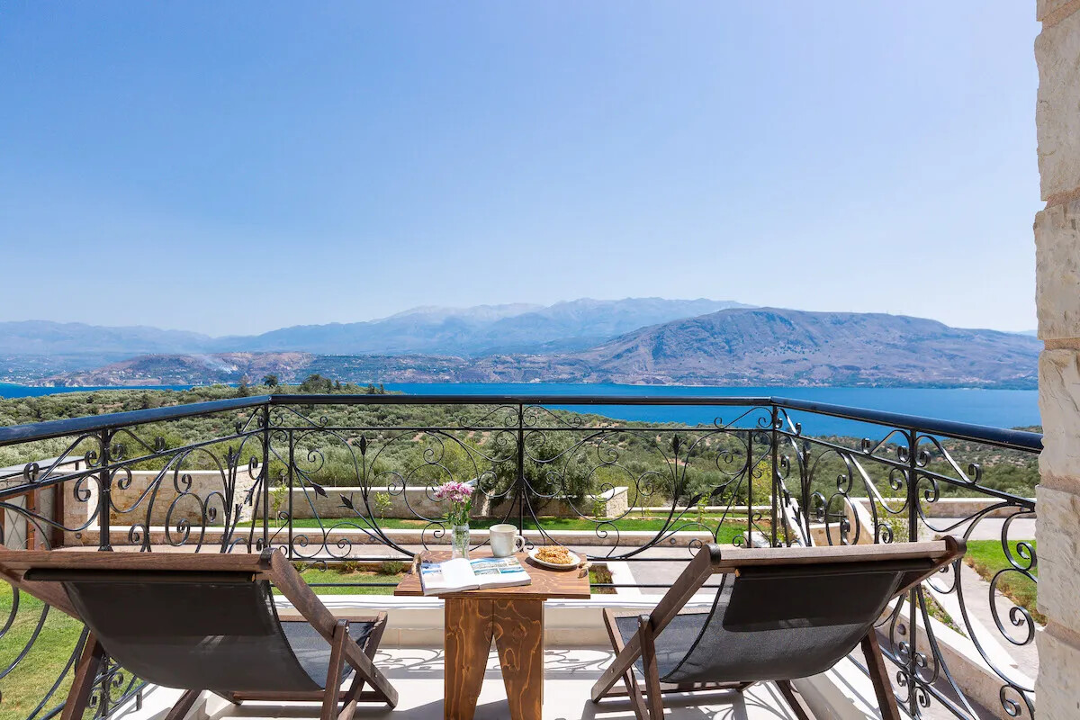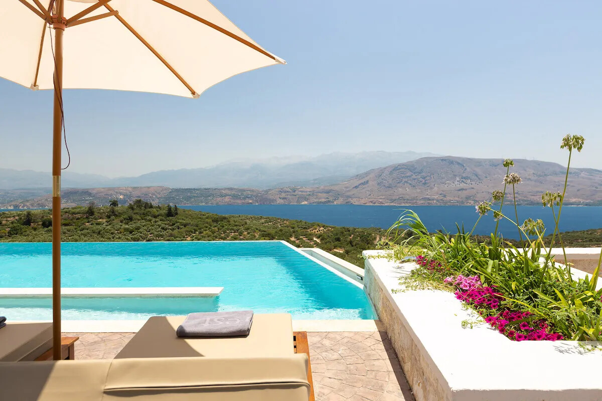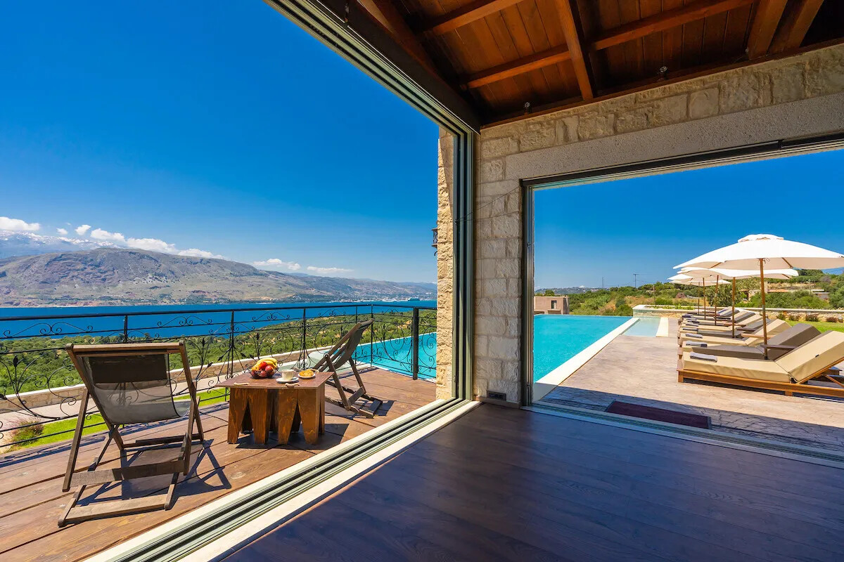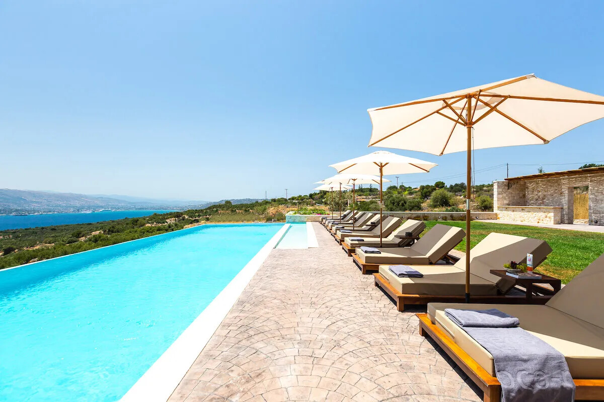 A brand new luxurious Villa perched on a hilltop, offering amazing, panoramic views of the sea, Souda Bay and the surrounding area.