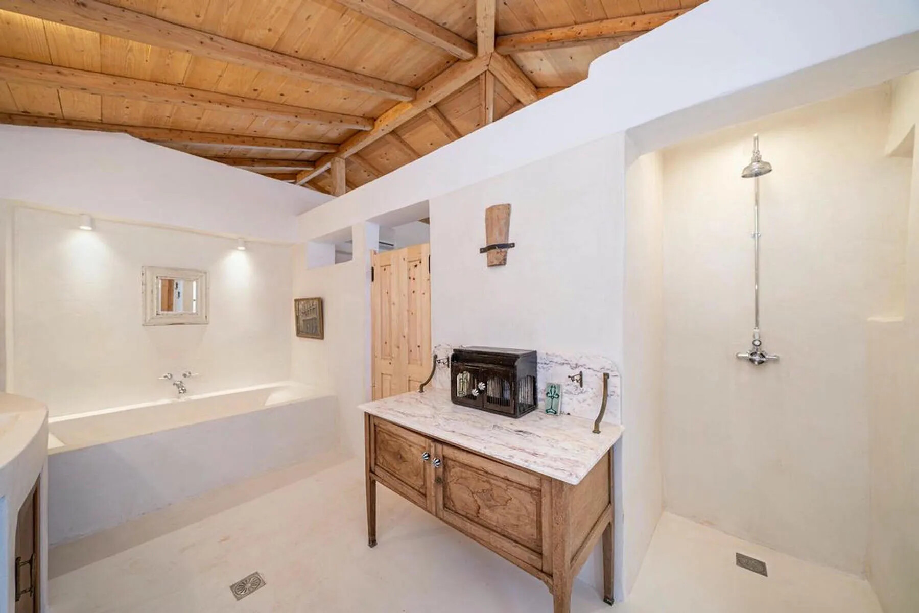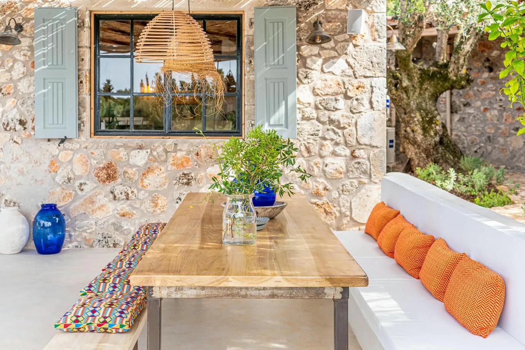 The outdoor spaces are just as impressive as the villa’s interiors. The property features beautifully landscaped gardens, enclosed by traditional stone walls, creating a tranquil and private setting. The large swimming pool provides the perfect spot for relaxation, while the covered dining areas invite you to enjoy alfresco meals with friends and family.