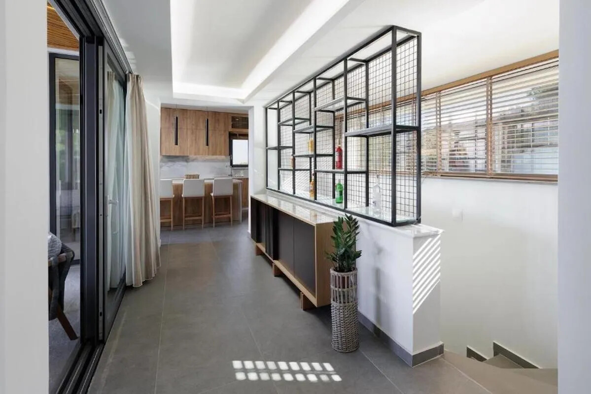 The villa’s unique layout ensures that all areas have uninterrupted sea views and direct access to the infinity pool and outdoor spaces. The stylish interiors blend elegance with functionality, providing a luxurious yet comfortable living environment. The open-plan living and dining areas flow seamlessly into the fully equipped kitchen, making it ideal for entertaining and relaxation.