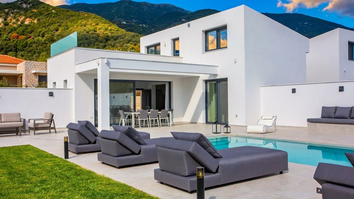 This modern and elegant 120 sq.m. villa, built in 2019, is located in the beautiful area of Nydri, Lefkada. The villa spans two levels and offers a harmonious blend of luxury and simplicity, with a minimalist aesthetic reflected in its clean white color scheme and linear design.