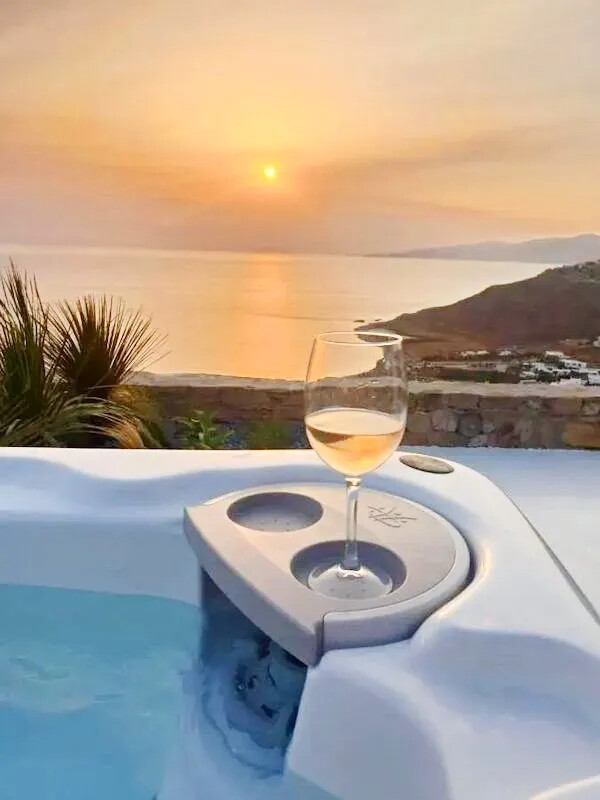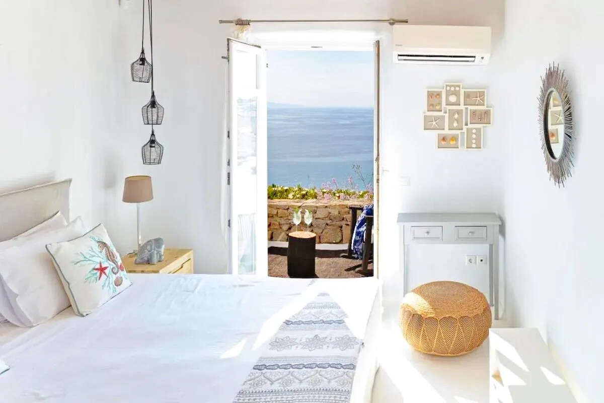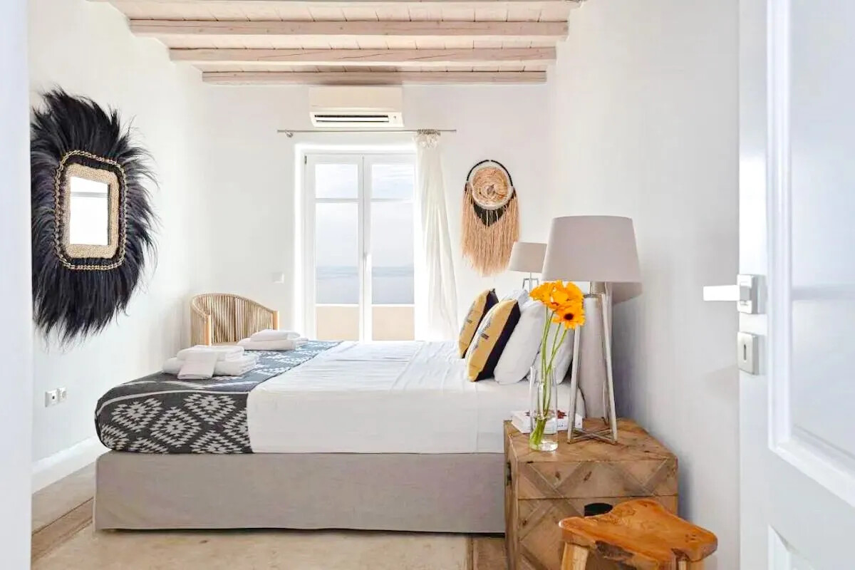 The villa’s prime location offers easy access to various beaches and the vibrant Mykonos Town. It is ideal for cycling enthusiasts, with bike rentals available at the villa. Car rentals are also available for exploring the island further. The area is known for its serene environment, making it a perfect escape from the hustle and bustle while still being close to key attractions and amenities.