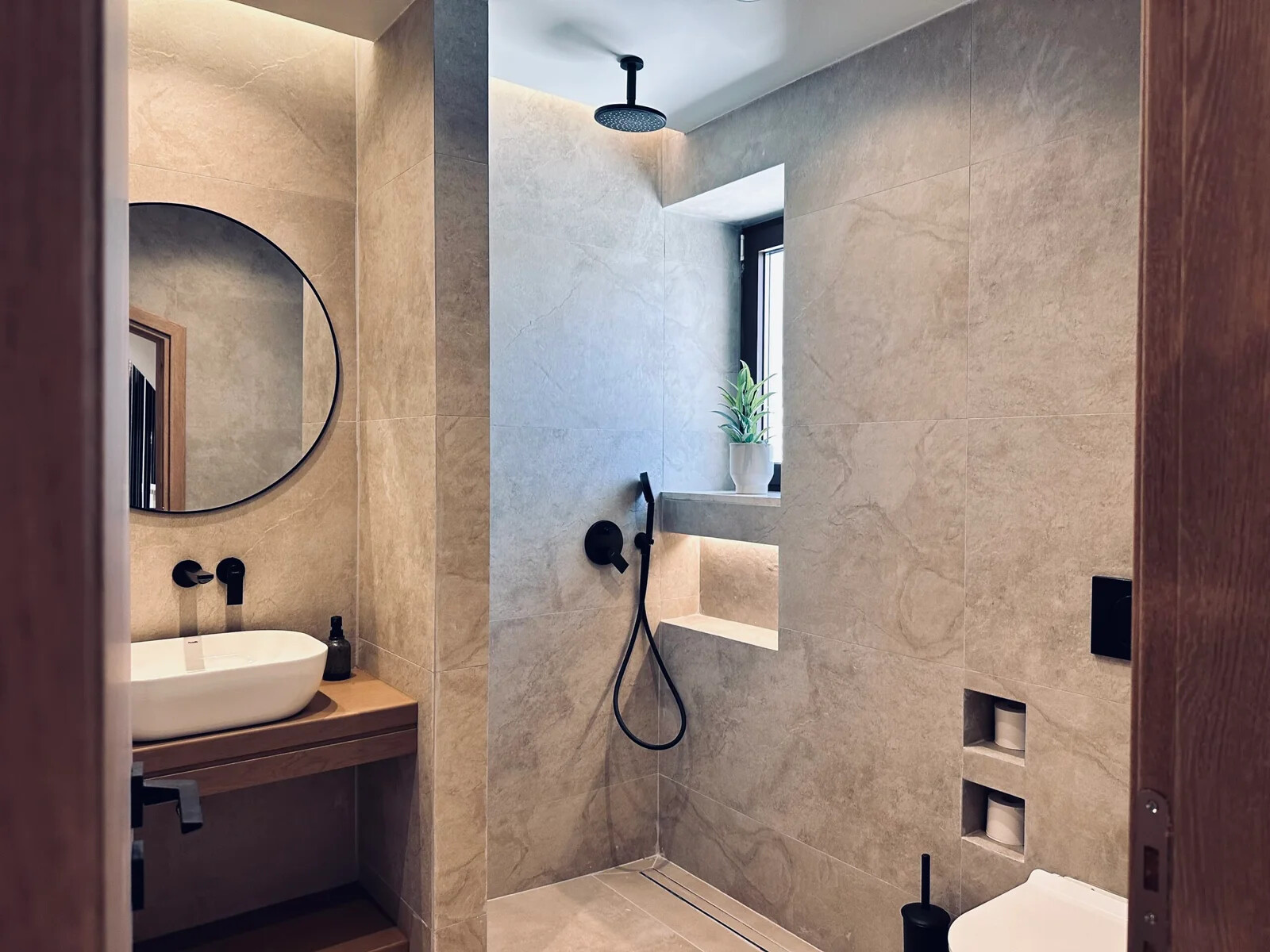 - Bathrooms: A full bathroom with a shower and an additional WC.