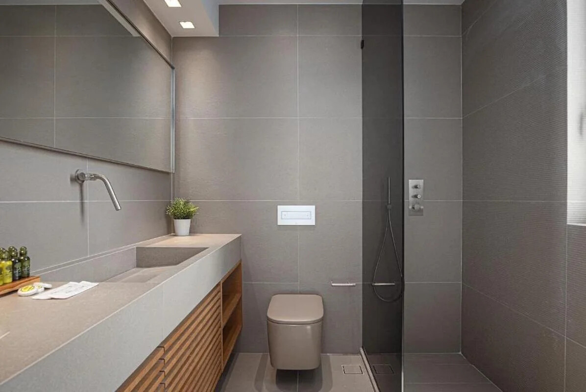 The main living area, bathed in natural light, graces the primary level, providing guests with panoramic sea views that capture the essence of the Athens Riviera. A double bedroom with an en-suite bathroom is also conveniently located on this level, ensuring privacy and convenience.