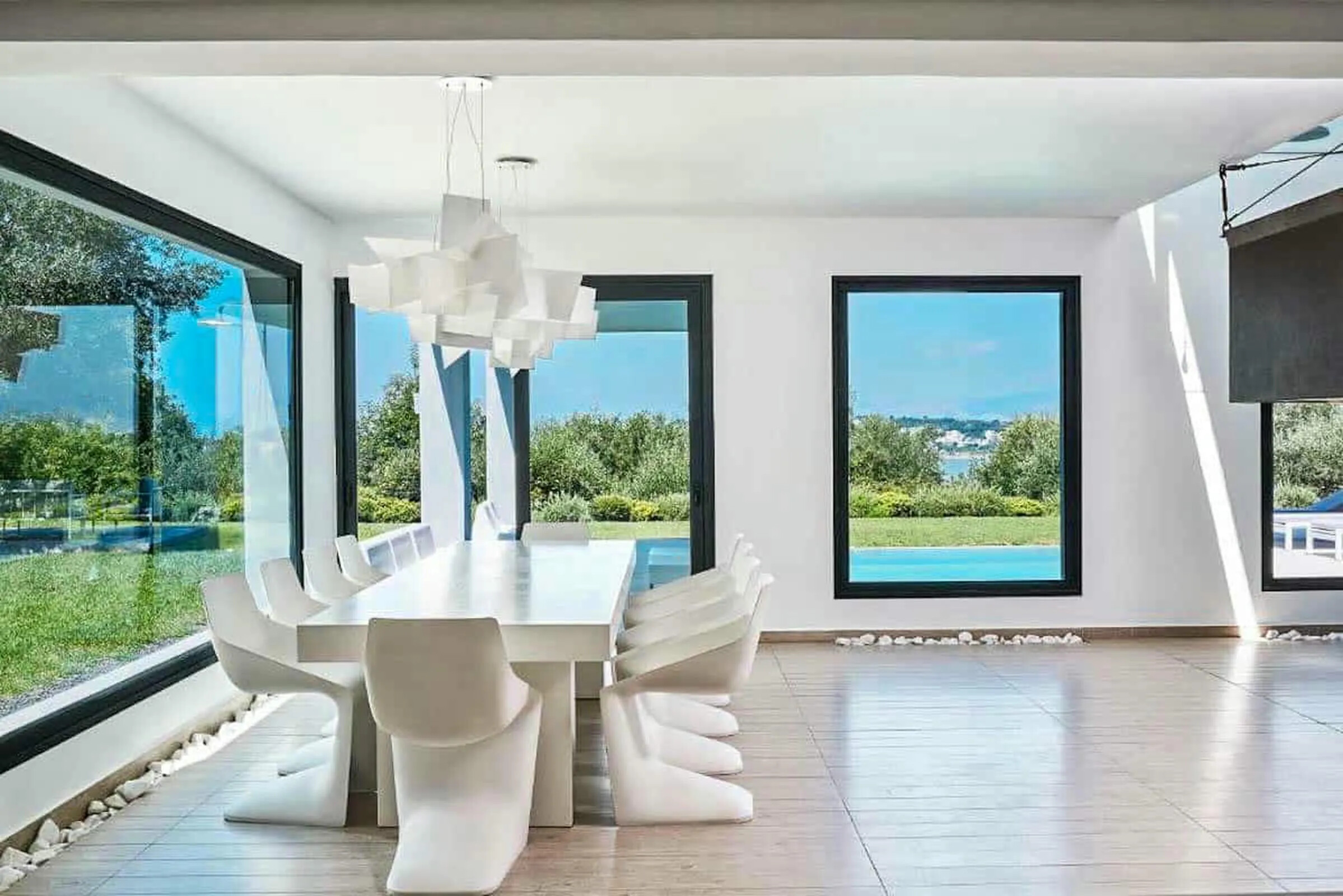 - Spectacular Views: Enjoy panoramic views of Corfu’s picturesque countryside and the shimmering Ionian Sea through the villa’s floor-to-ceiling windows.