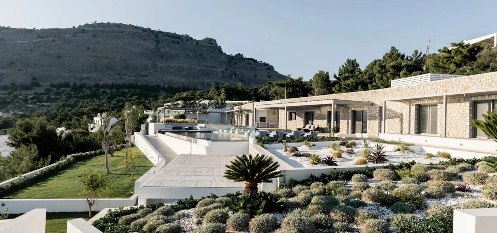 Discover an architectural masterpiece nestled in the picturesque Pefkoi area of Rhodes. This luxurious villa, spanning 541 sq.m., boasts impeccable design, southern orientation, and breathtaking panoramic sea views. Packed with modern conveniences, it offers an unparalleled living experience with comfort, luminosity, and serene spaces.