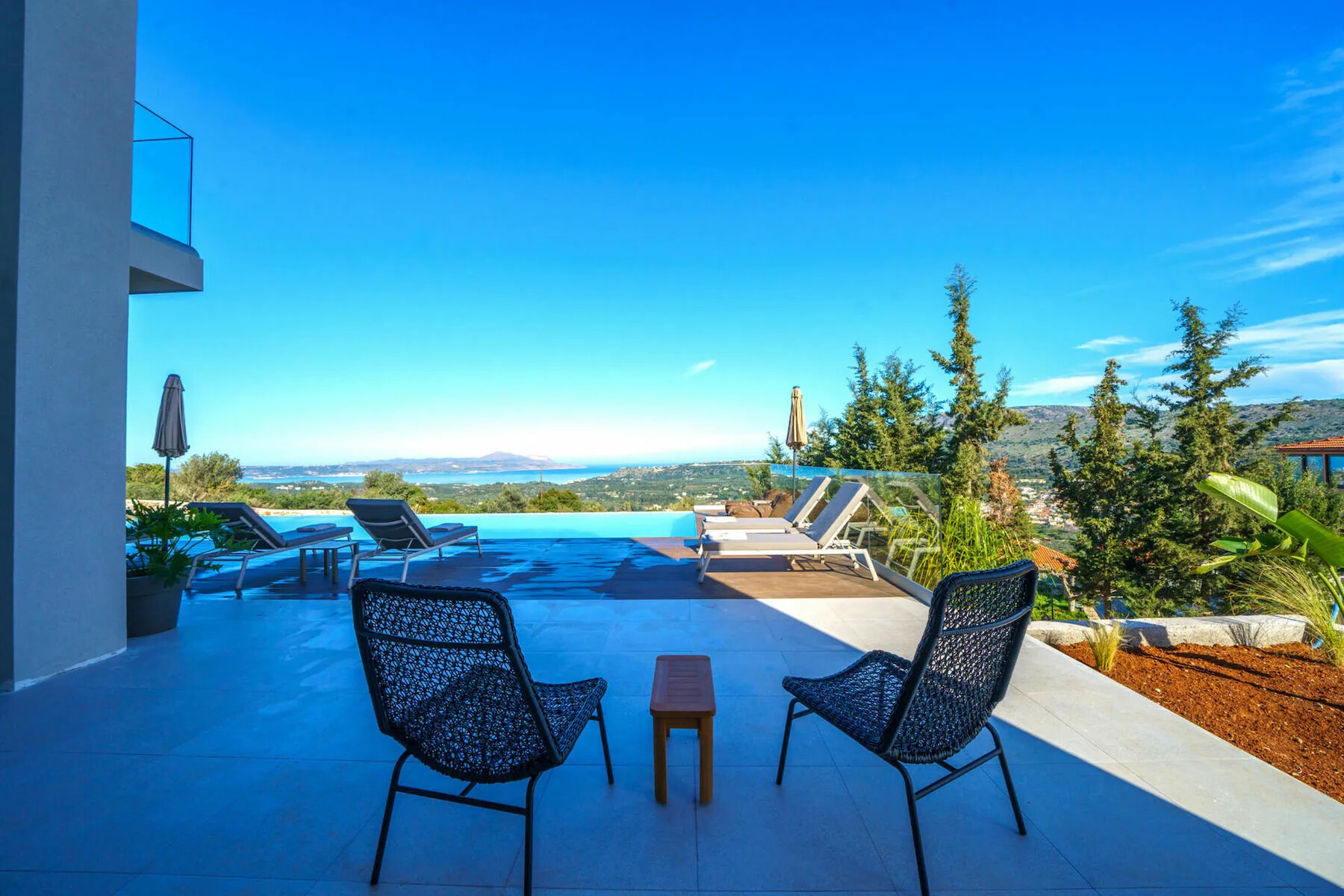 Discover the elegance and tranquility of this exquisite 270m² luxury villa in the picturesque village of Vamos, just 1.5km from its center. Set on a private 2,800m² estate, this retreat offers panoramic sea and mountain views, a 90m² heated swimming pool, and exceptional privacy — an idyllic setting for year-round living or a high-end holiday investment.