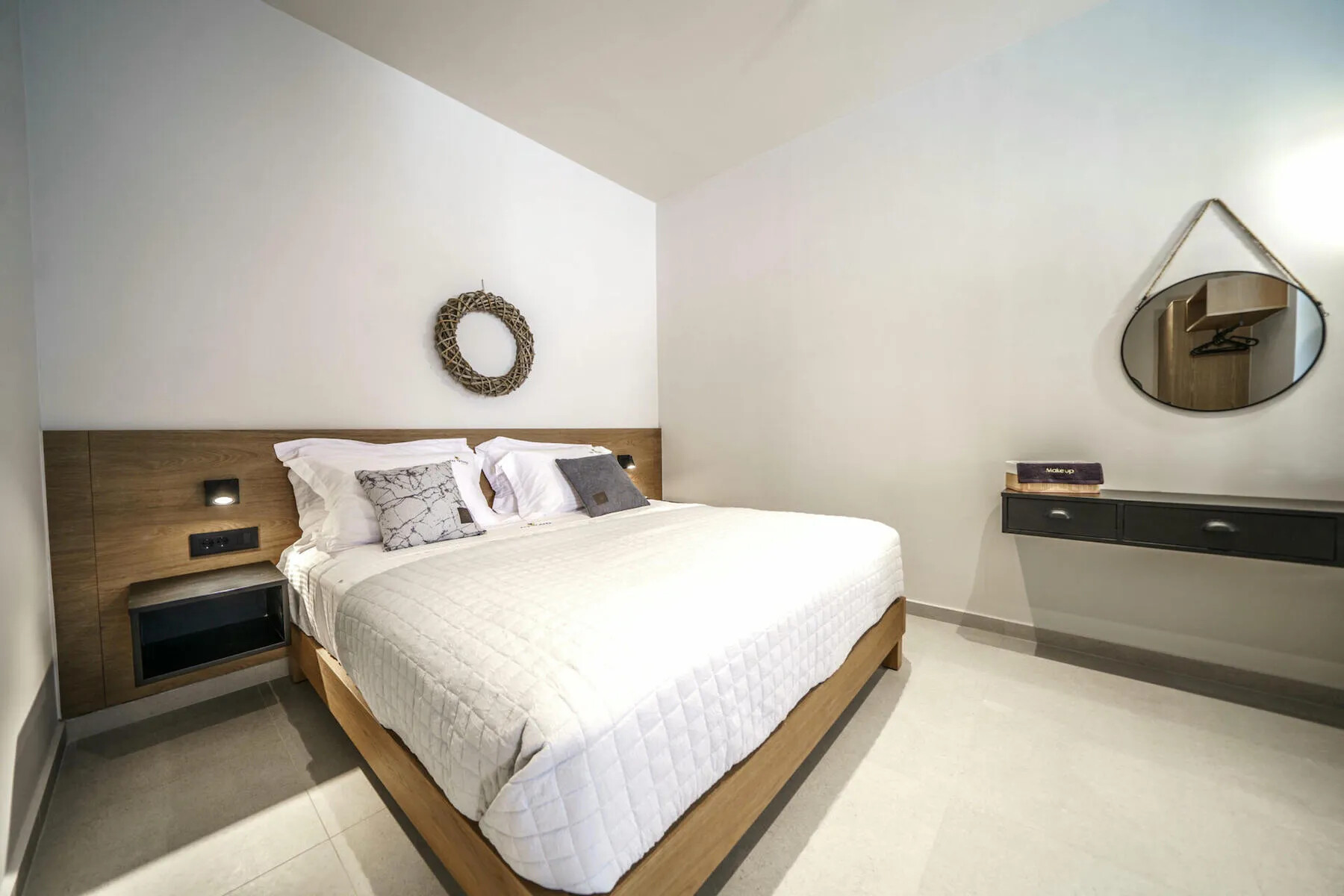 Luxury suite with king-size bed, two sofa beds, en-suite bathroom, and a fully equipped kitchen