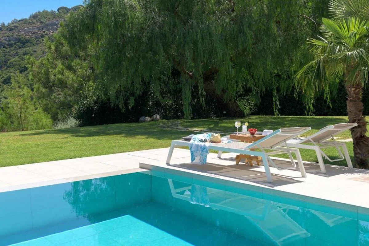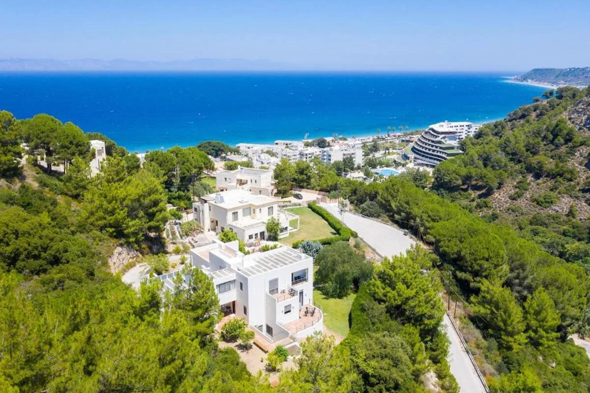 Rhodes, a unique and magnificent luxury villa spanning 460 sq.m. on a beautifully landscaped plot of 2,005 sq.m., boasts a sparkling swimming pool and majestic views of the Aegean Sea.