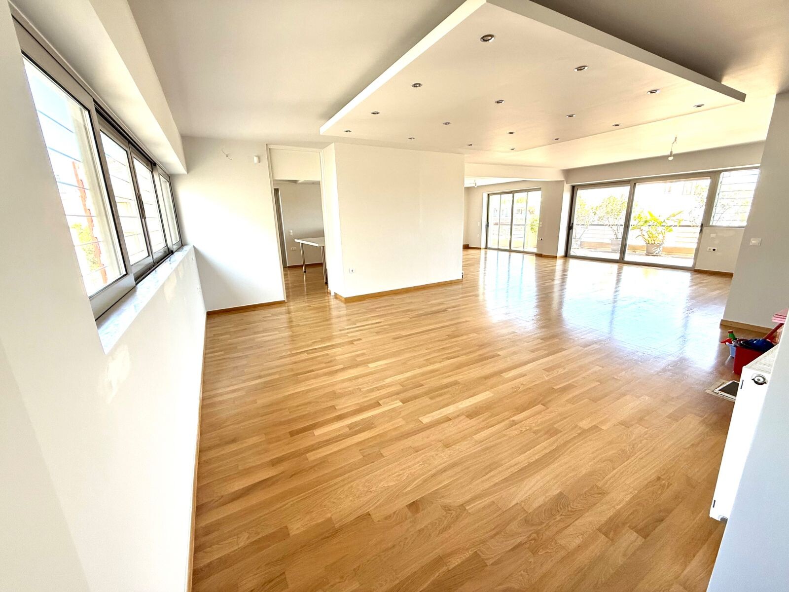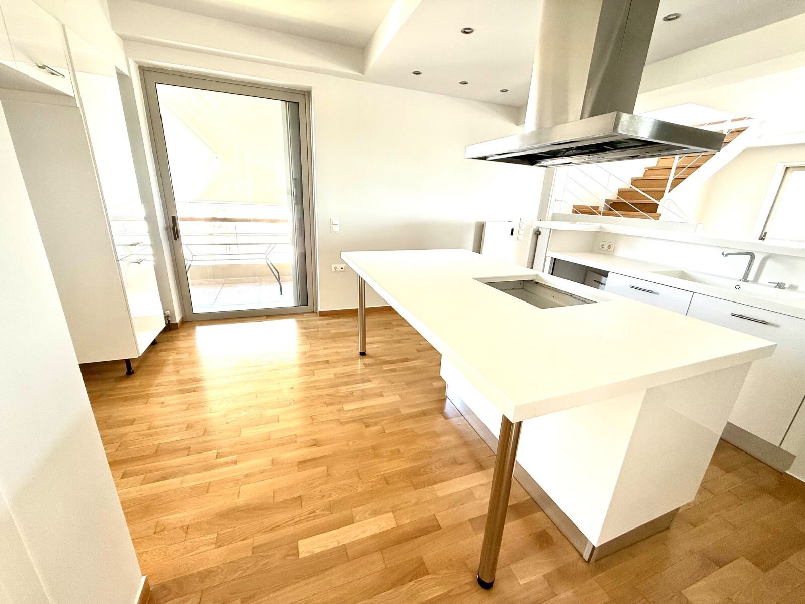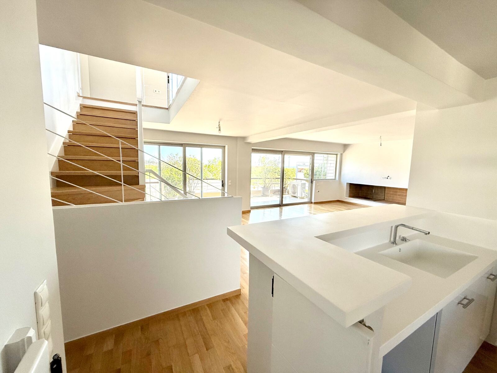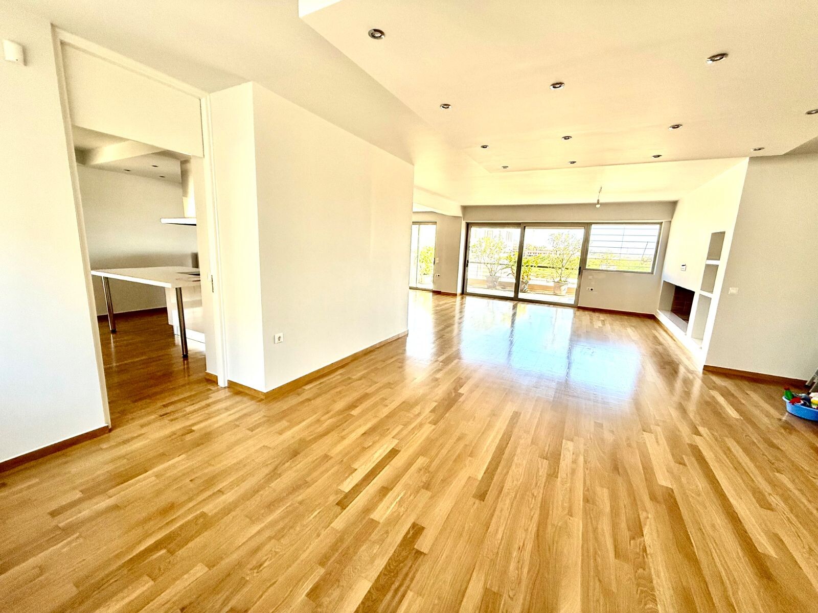 This stunning 3rd-floor maisonette is a rare find, boasting 220sqm of living space and an impressive 80sqm terrace with breathtaking views of the Hellinikon tower. Completely renovated, this property features new flooring, Daikin air conditioning, a sleek white lacquered kitchen with Korean countertops, stylish bathrooms, awnings, and an alarm system. Located just 400 meters from Poseidonos Avenue, this quiet and newly built neighborhood is adjacent to the picturesque parks of the new Hellinikon project.