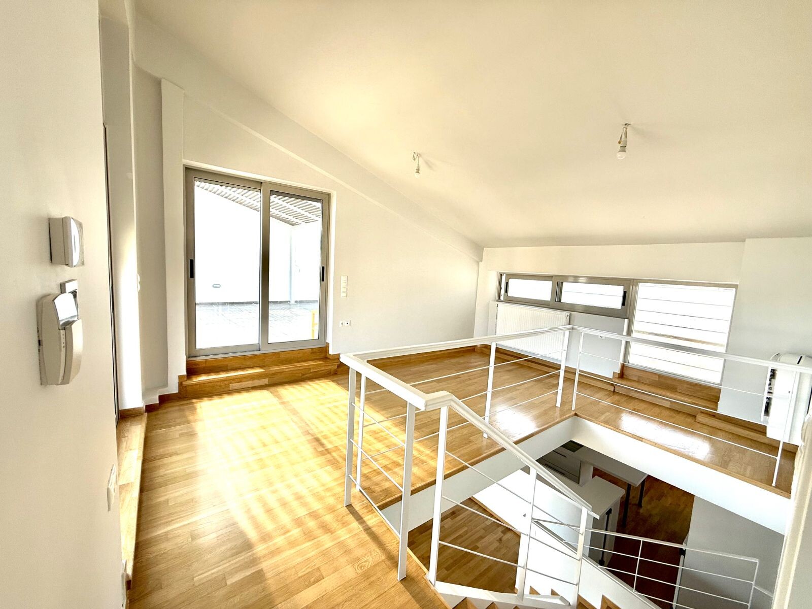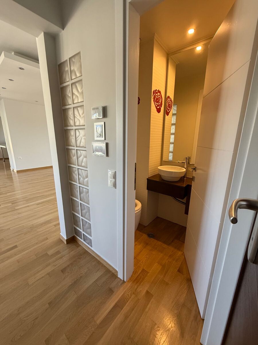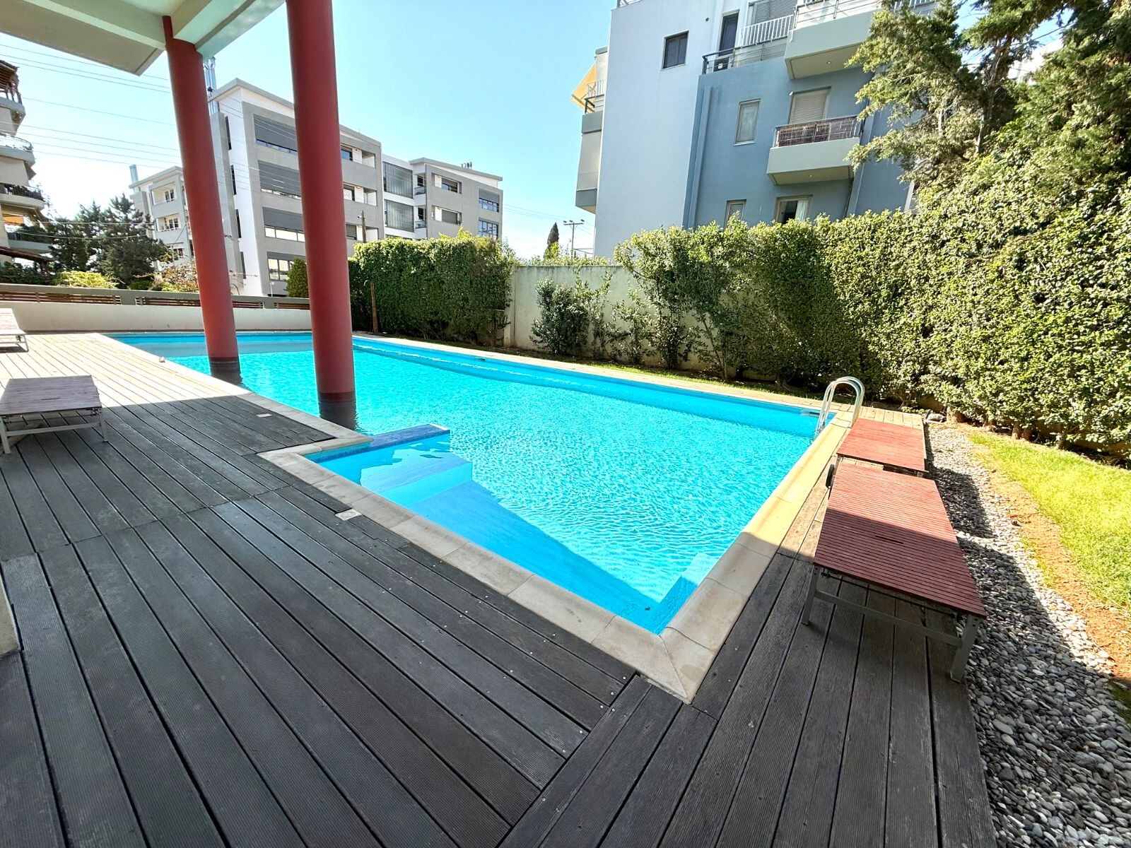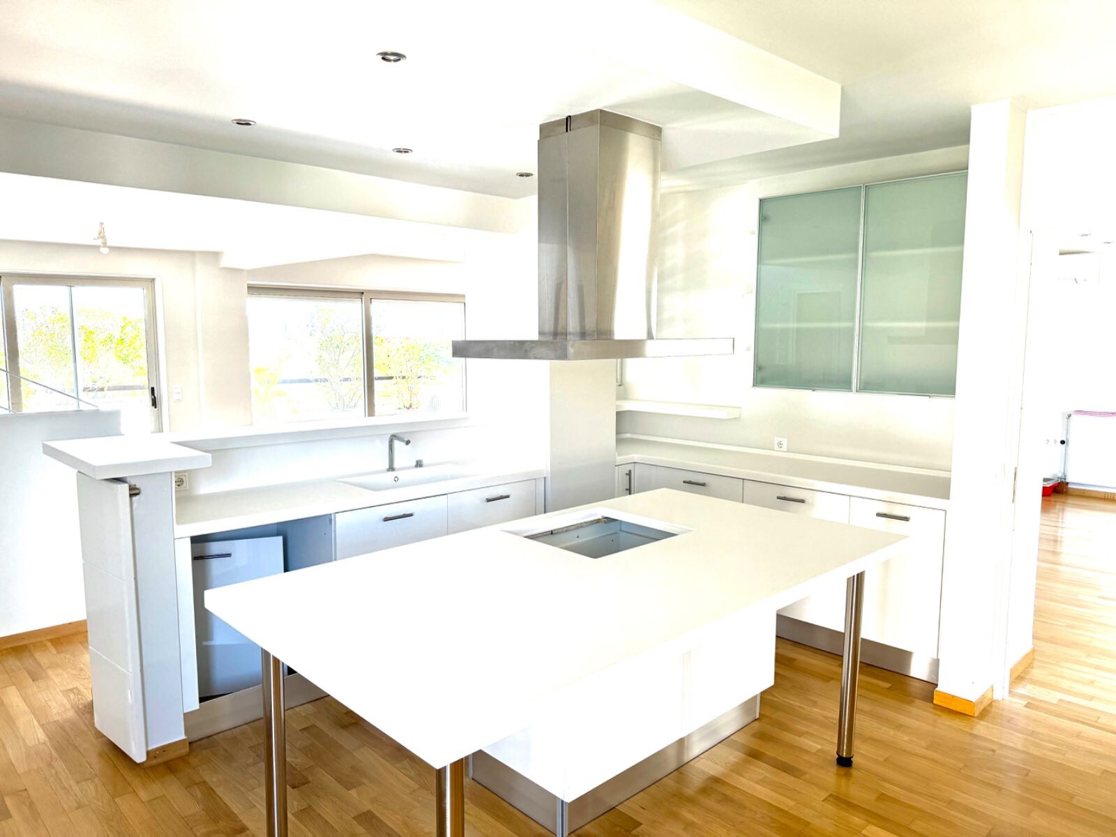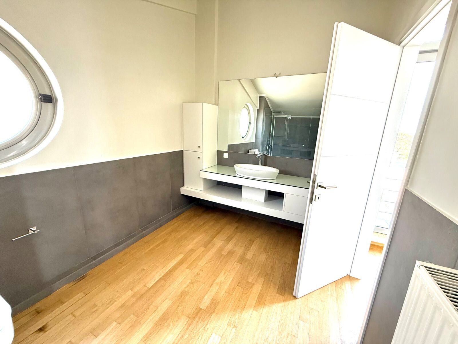 This stunning 3rd-floor maisonette is a rare find, boasting 220sqm of living space and an impressive 80sqm terrace with breathtaking views of the Hellinikon tower. Completely renovated, this property features new flooring, Daikin air conditioning, a sleek white lacquered kitchen with Korean countertops, stylish bathrooms, awnings, and an alarm system. Located just 400 meters from Poseidonos Avenue, this quiet and newly built neighborhood is adjacent to the picturesque parks of the new Hellinikon project.