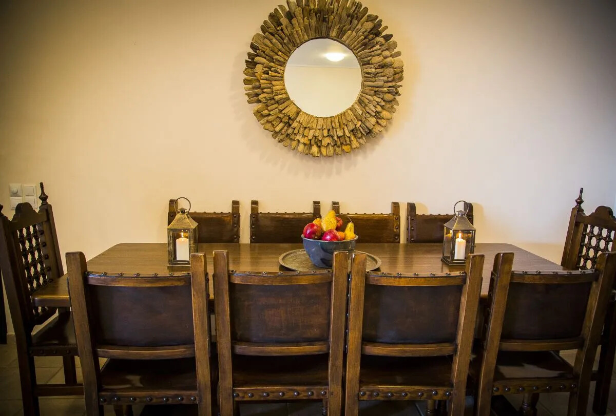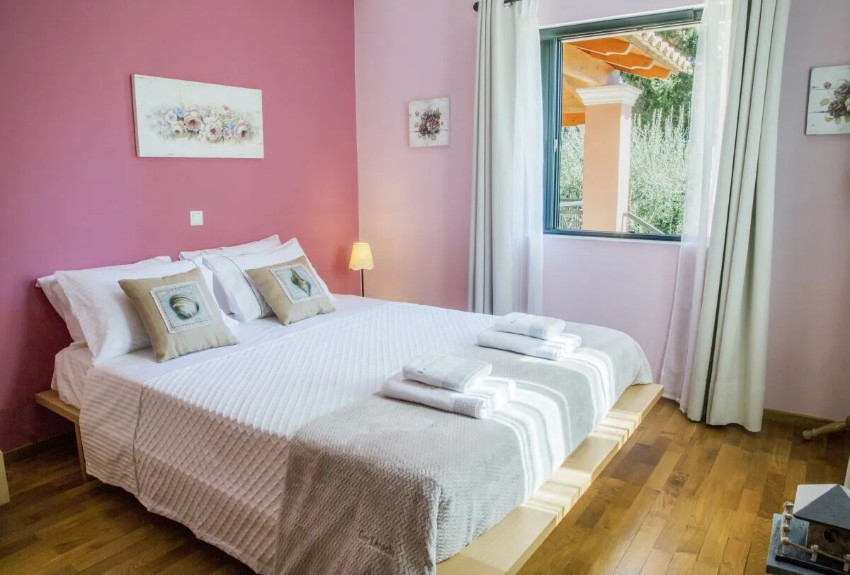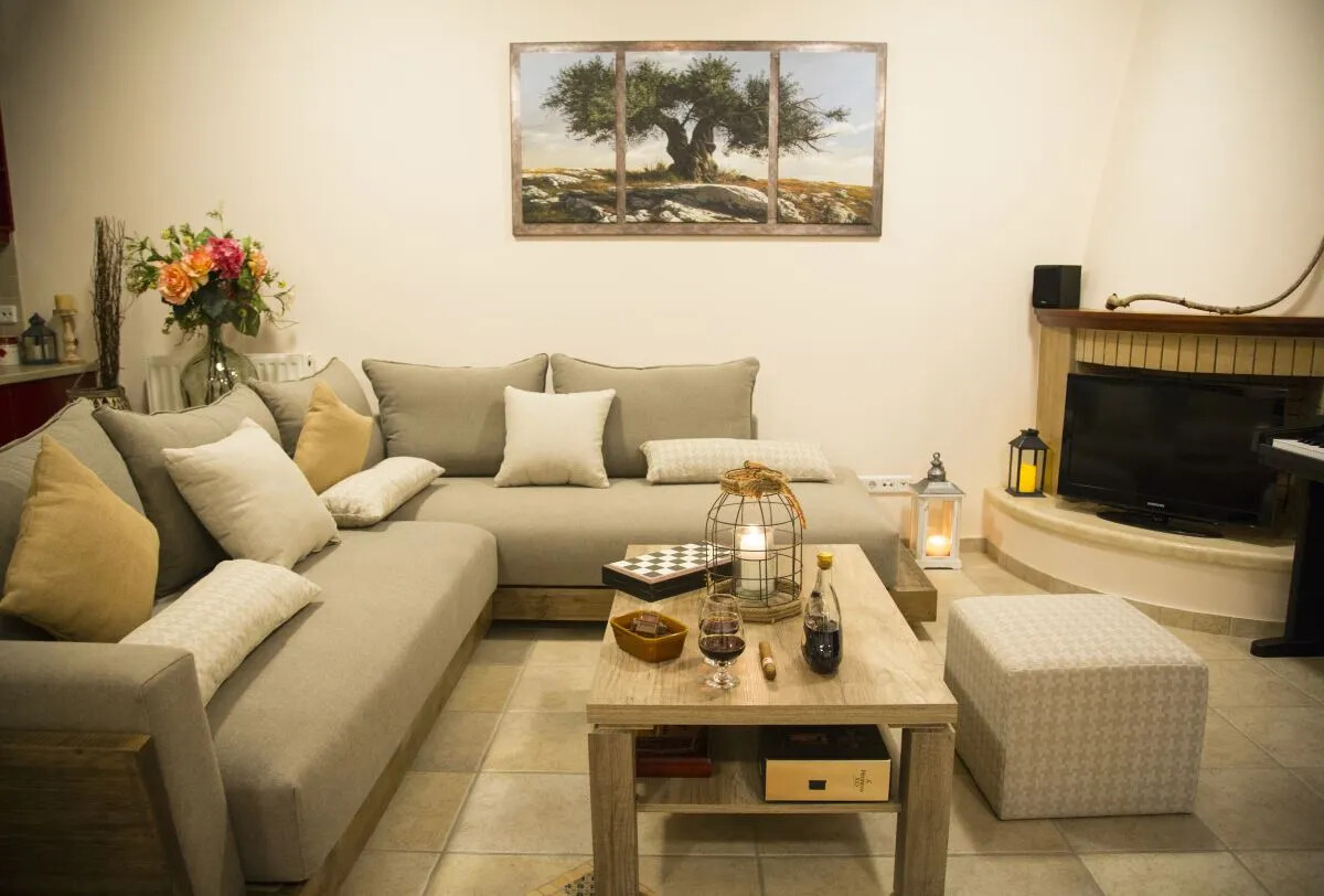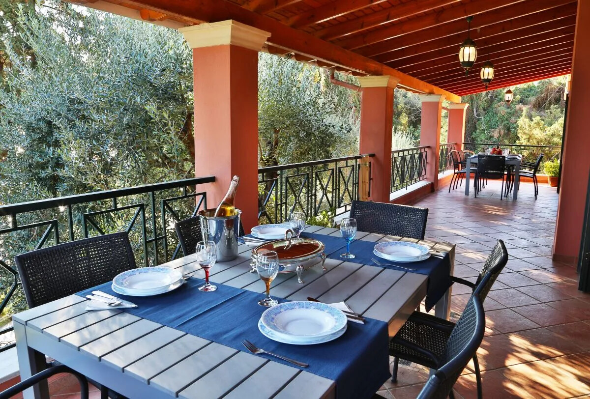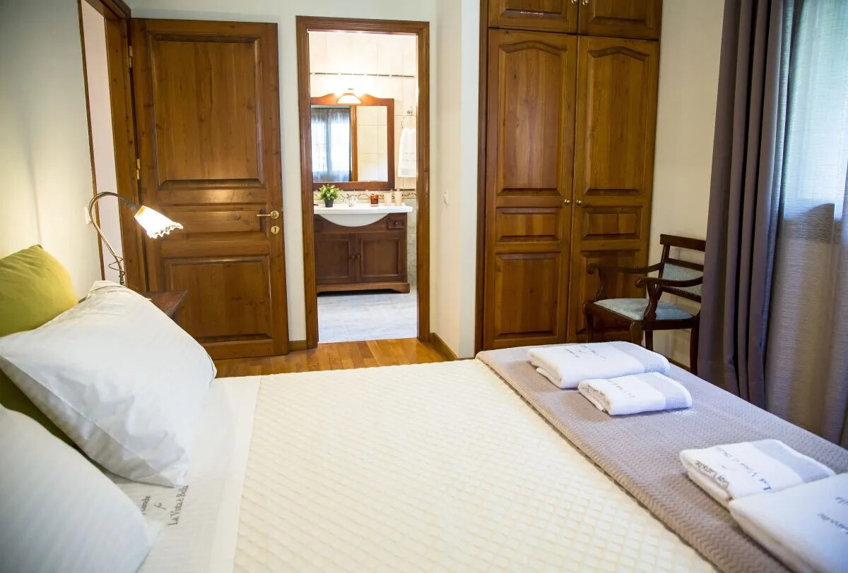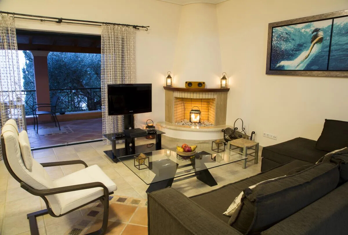 - Main Villa (290 sq.m.): Built in accordance with traditional Corfiot architecture, the main villa spans two levels and includes 8 spacious bedrooms, 3 comfortable living rooms with fireplaces, 3 fully equipped kitchens, 6 elegant bathrooms, and 1 WC. Each space is thoughtfully designed to maximize comfort and privacy.