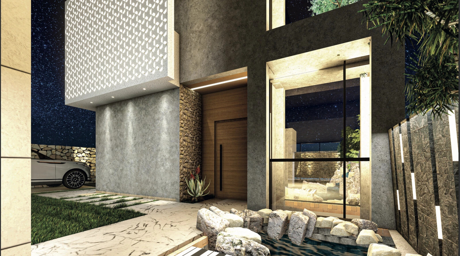 Outdoor Living Space: Experience the perfect synergy of nature and design with a garden, pool, small lake, parking space, and a cozy patio surrounding the residence. The carefully curated landscaping creates a microclimate within the property.