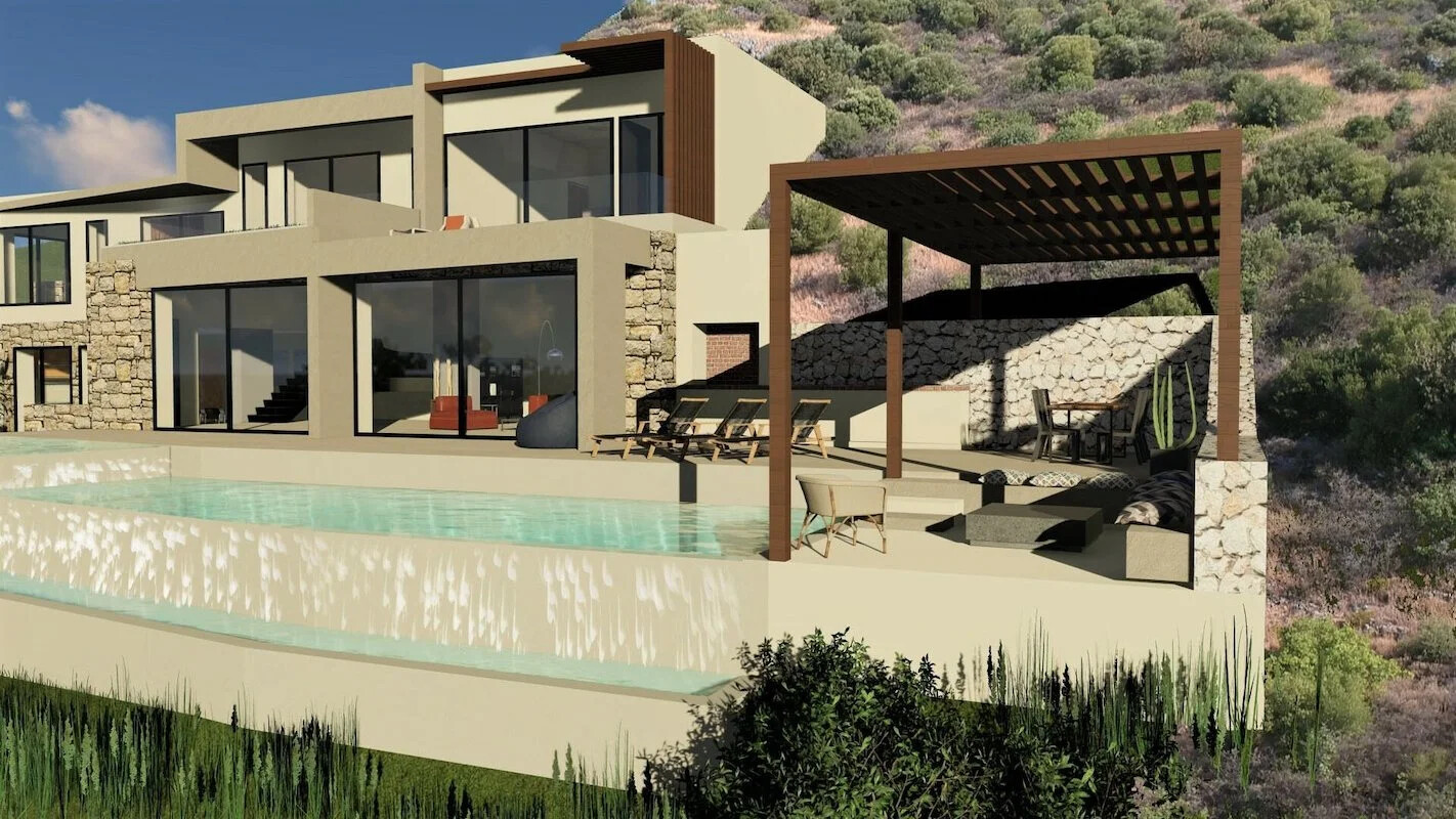 Discover the allure of this modern architectural masterpiece! A stunning villa of 255 sq.m. awaits construction, nestled in a verdant landscape with panoramic sea views, just a stone’s throw away from the beach. This luxurious property sits on a generous plot of 4,000 sq.m., providing ample space for both tranquility and outdoor enjoyment.