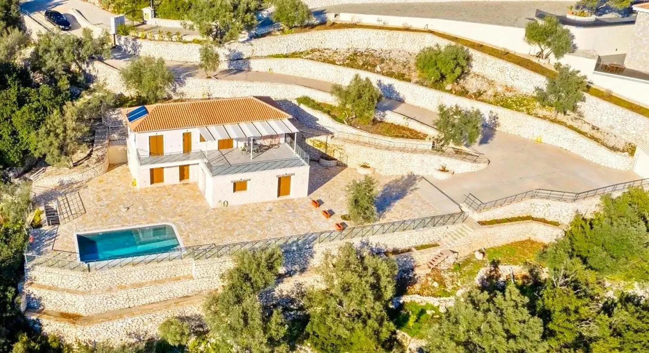 Nestled in a quiet, sun-drenched hillside location, just two minutes from the traditional village of Fterno, this villa seamlessly blends modern comfort with timeless Mediterranean charm. Ideal for both residential use and high-end holiday rental, this is a prime example of Lefkada real estate with Golden Visa potential.