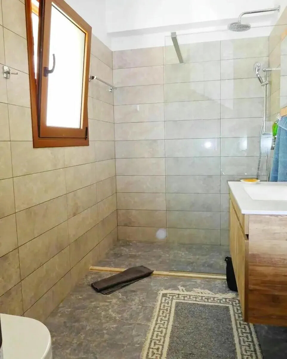 Each of the four en-suite bedrooms is fitted with walk-in rainfall showers, premium fixtures, and captivating sea views—three on the lower floor and one in the self-contained upper apartment. All rooms are fully air-conditioned and benefit from underfloor heating, ensuring year-round comfort.