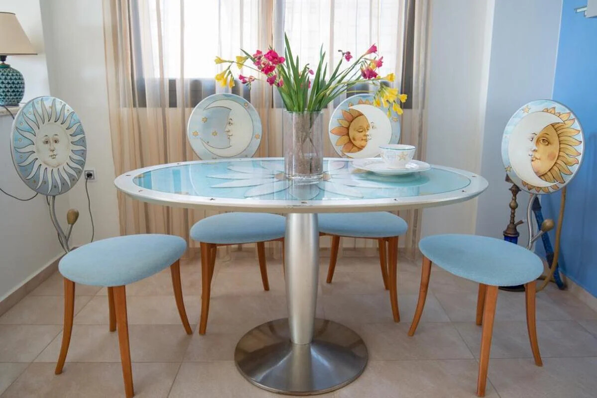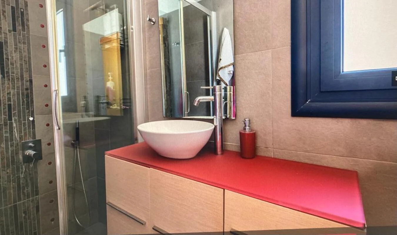 Exuding the elegant Cycladic style, this residence features spacious indoor and outdoor areas designed for ultimate relaxation. The ground floor boasts a fully equipped German kitchen, a maid’s room, a bathroom, a dining room, a living room with a cozy fireplace, and a wood storage area. Ascend to the upper level to discover two bedrooms – a very spacious one that comfortably accommodates four people and another bedroom for two, along with a large bathroom.