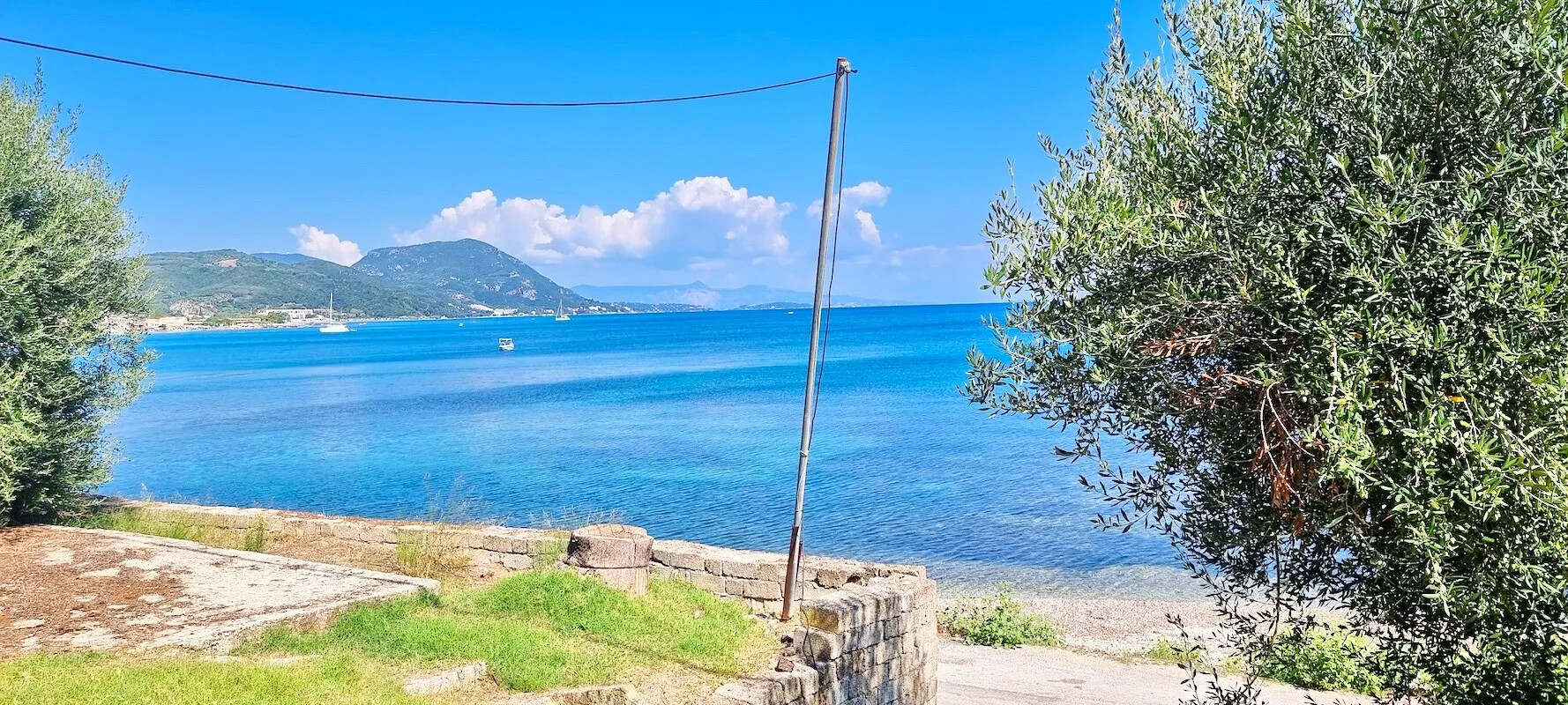Seize the opportunity to own a seaside property in Corfu, situated in the southern region of Meliteieoi, specifically in Psaras area. This coastal estate spans 2.9 hectares, with a mere 10 meters distance from the sea, featuring a 45-meter frontage and 300 square meters of open space in front of the properties.