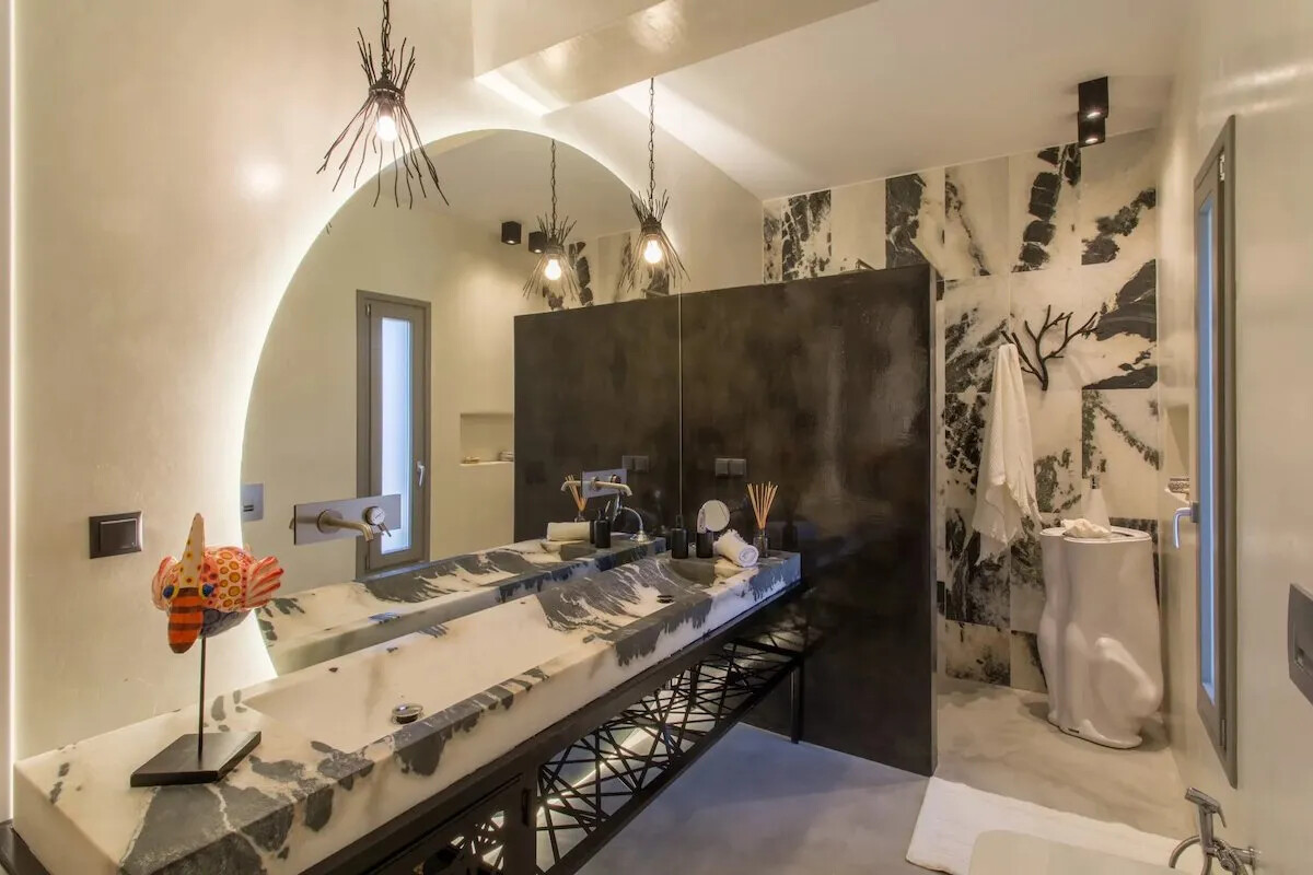 This stunning 5-bedroom, 5-bathroom architectural masterpiece spans an impressive 440 square meters, seamlessly blending with the island’s natural beauty.