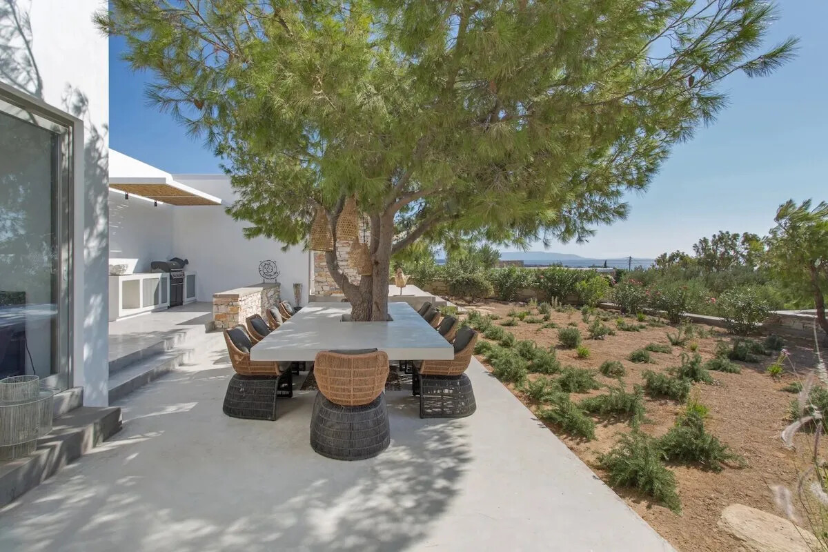 One of the standout features of this island retreat is the thoughtful consideration given to personal space and relaxation. Each bedroom boasts its own private outdoor sitting area, from charming alcoves scattered throughout the house to hidden outdoor beds on the property, offering an abundance of serene spots to unwind and savor the beauty of Paros.