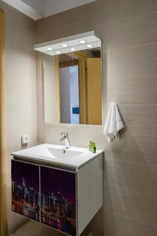Situated in a corner building constructed in 2006, this apartment was renovated in the summer of 2023 and currently operates as a tourist accommodation, on Booking.com. The apartment offers modern amenities including autonomous heating, air conditioning in all rooms, and a solar water heater.