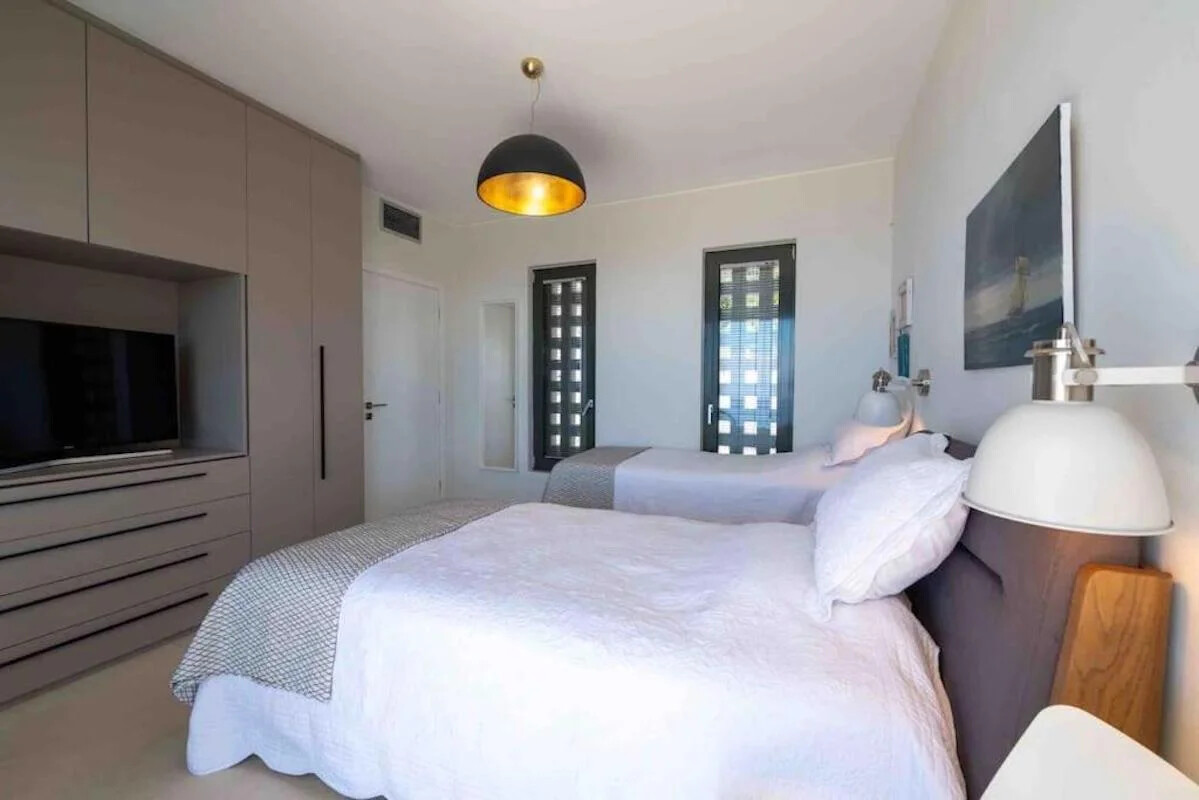 Key Features:  Two Independent Maisonettes with Unobstructed Sea and Mountain Views  Inviting Pool with Panoramic Views Outdoor Lounges and Barbecue Area Ample Parking on a 2,200 sqm Plot  Fireplace for Cozy Evenings with Abundant Natural Light through Large Windows  Central Air Conditioning and Heating System  Signature Design by Renowned Architectural Firm Construction Materials from Renowned Foreign Factories