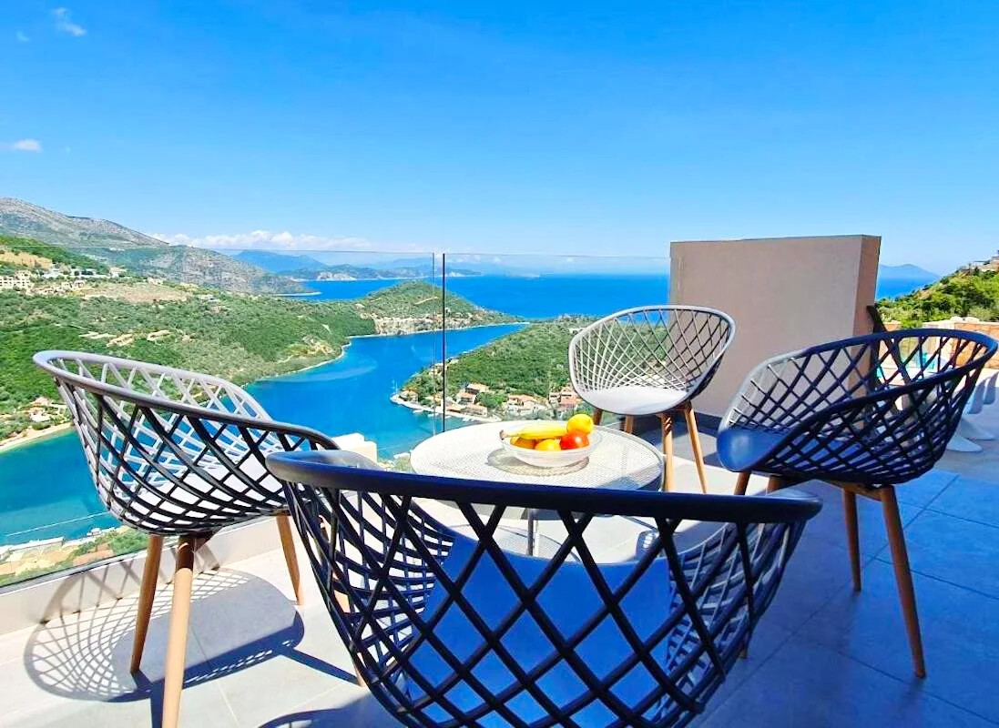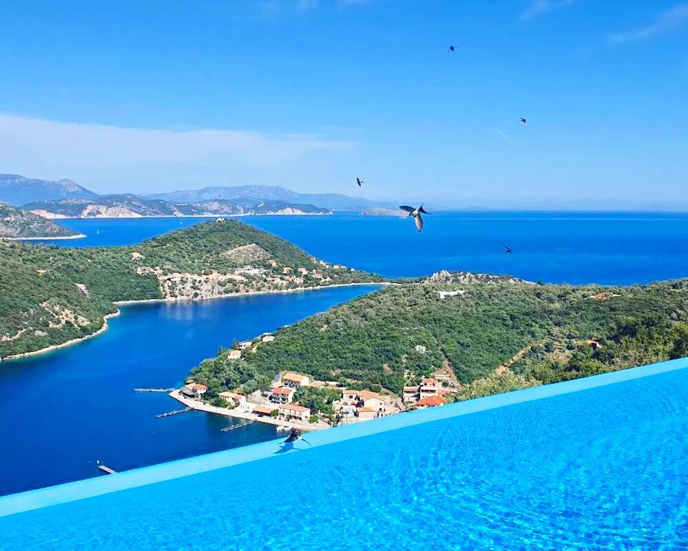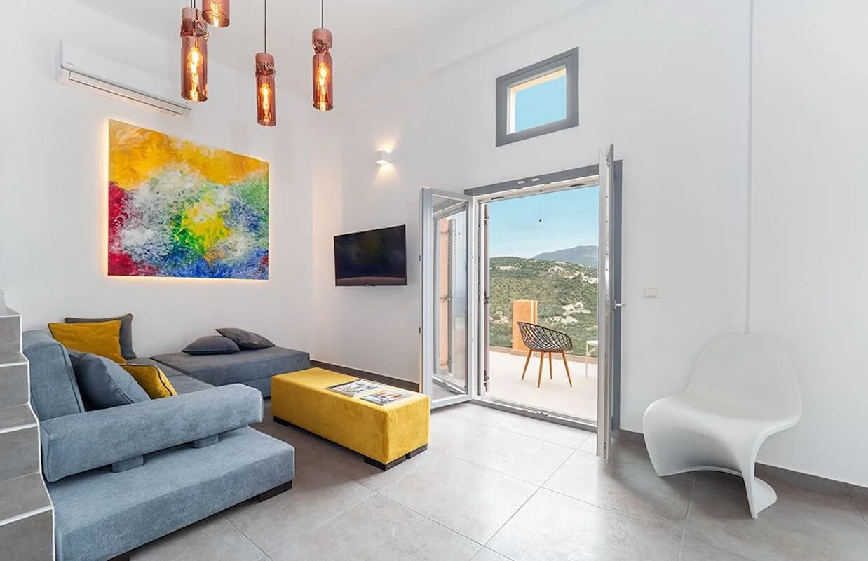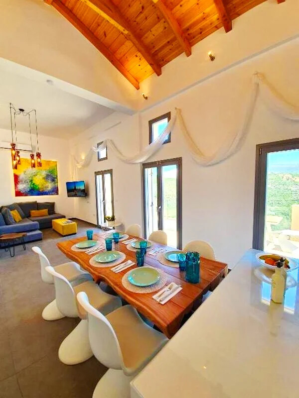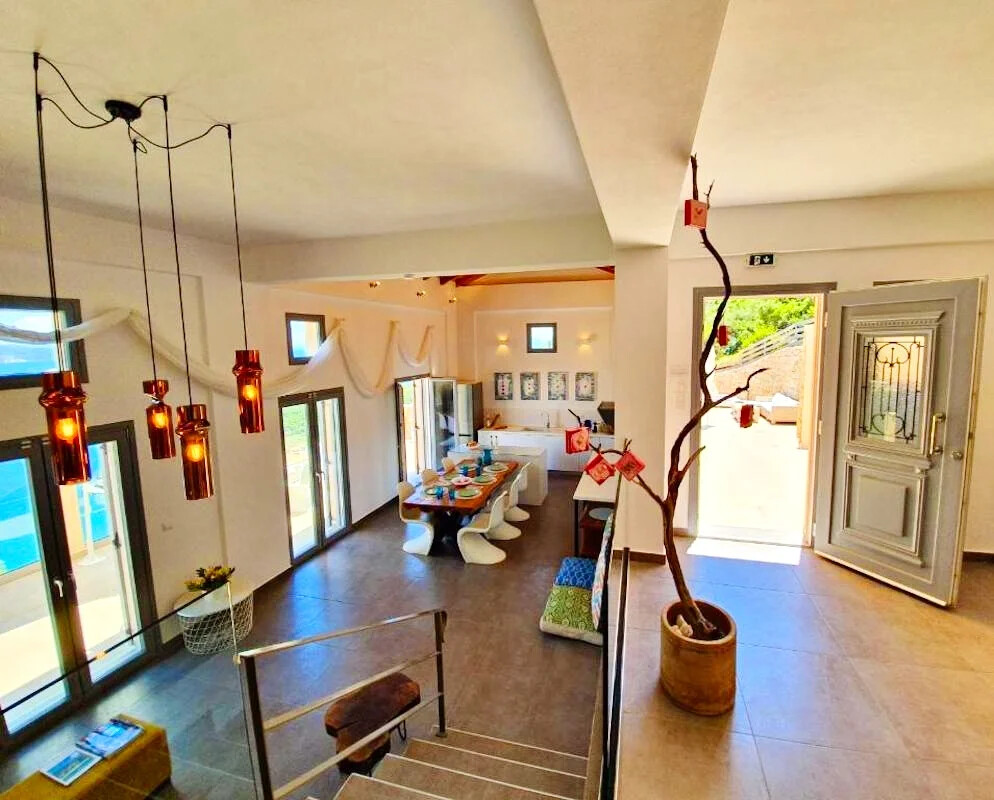 - Elegant Interiors: Step inside to discover interiors adorned with artworks, design objects, and contemporary lighting. The common areas and bedrooms boast breathtaking views of the turquoise Ionian sea and lush green hills, creating an atmosphere of refined luxury.