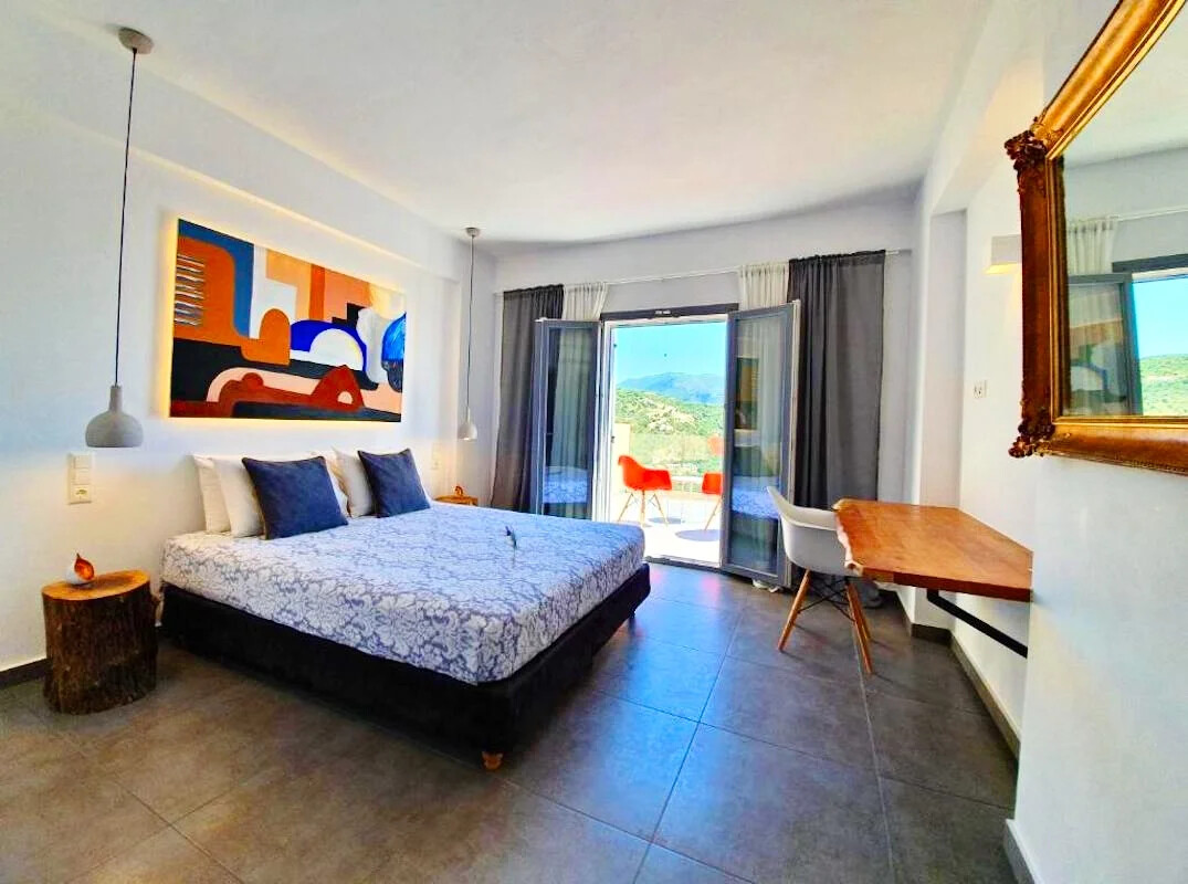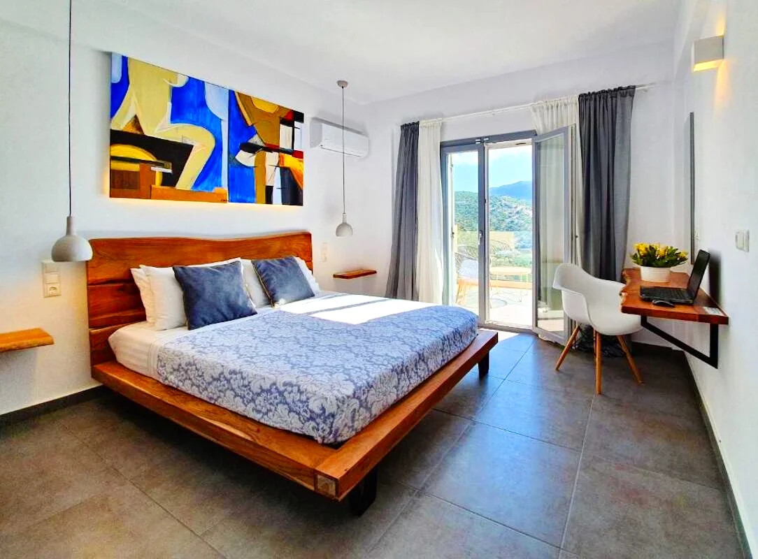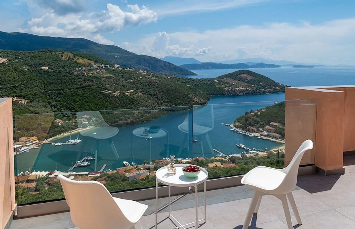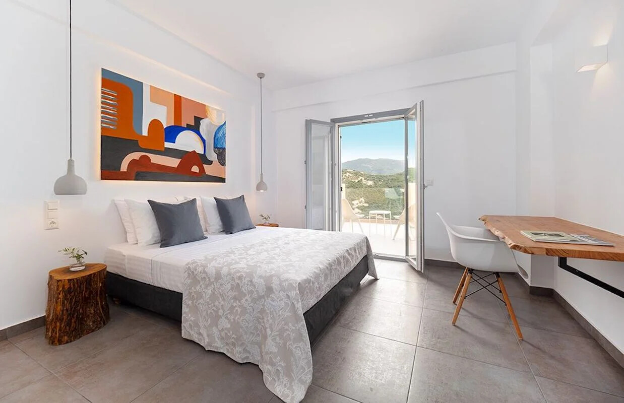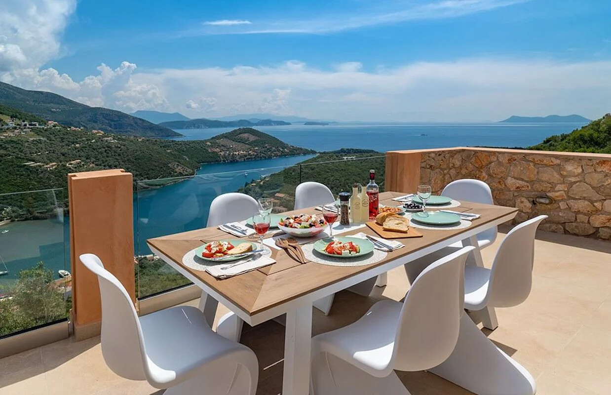 - Elegant Interiors: Step inside to discover interiors adorned with artworks, design objects, and contemporary lighting. The common areas and bedrooms boast breathtaking views of the turquoise Ionian sea and lush green hills, creating an atmosphere of refined luxury.