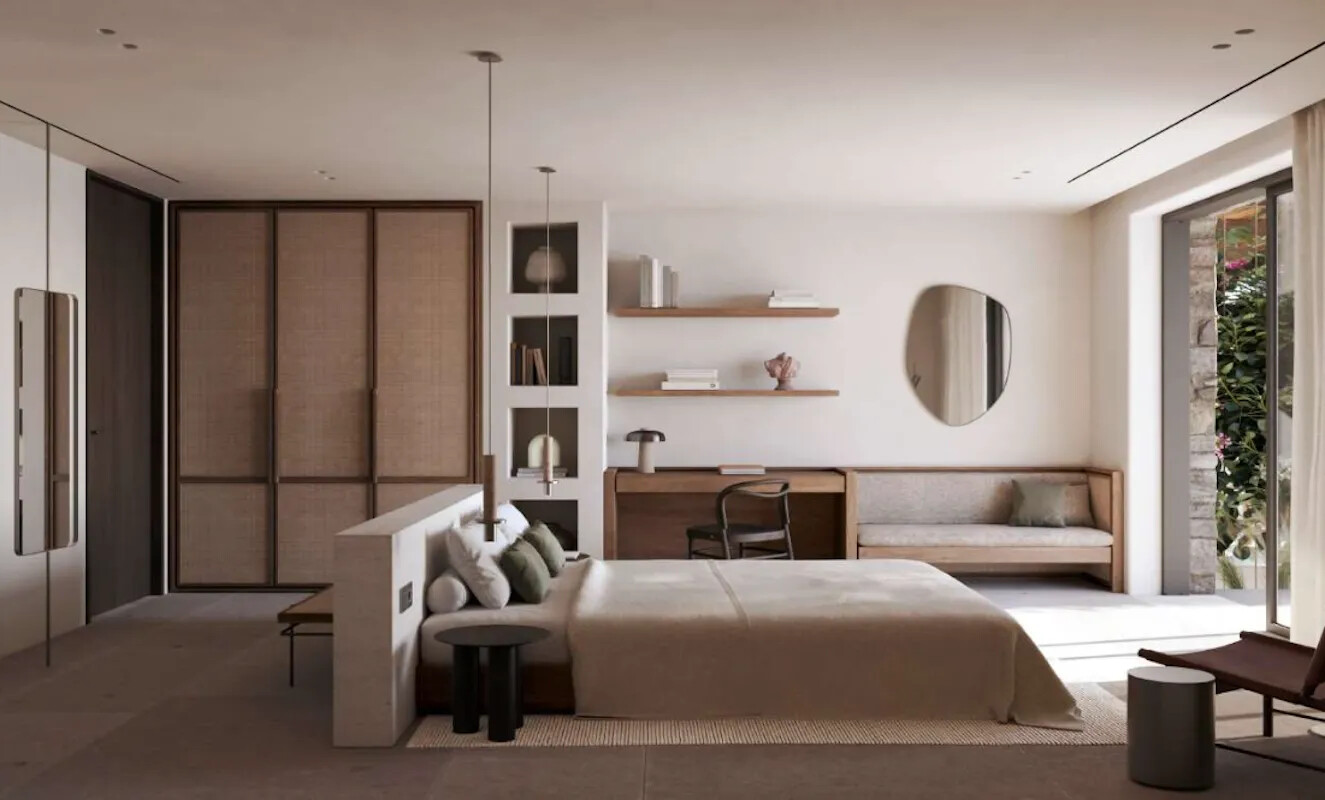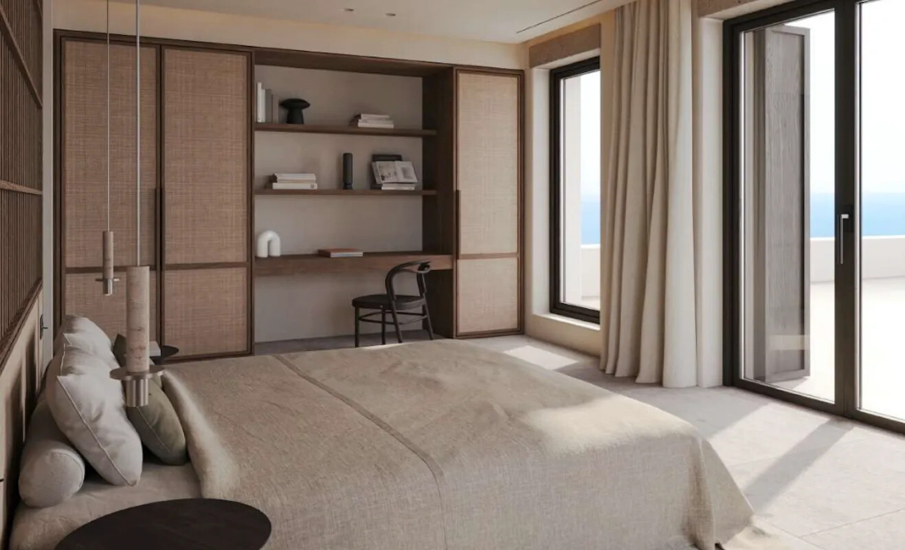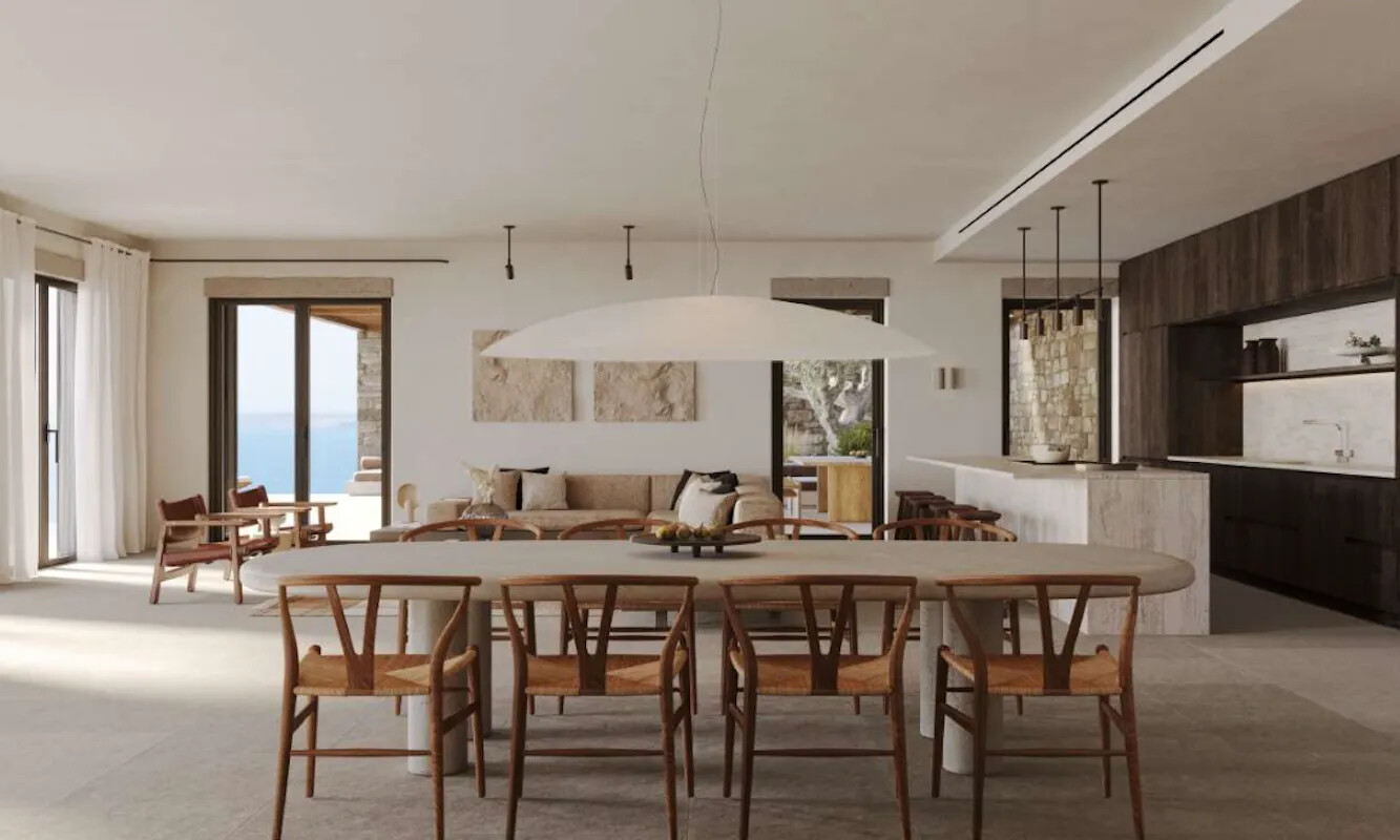 Designed with a seamless blend of white-washed volumes, straight stone walls, and wooden pergolas, the villa harmoniously integrates into its natural surroundings. The in-cave sections enhance the Cycladic aesthetic while providing a unique and intimate living experience.