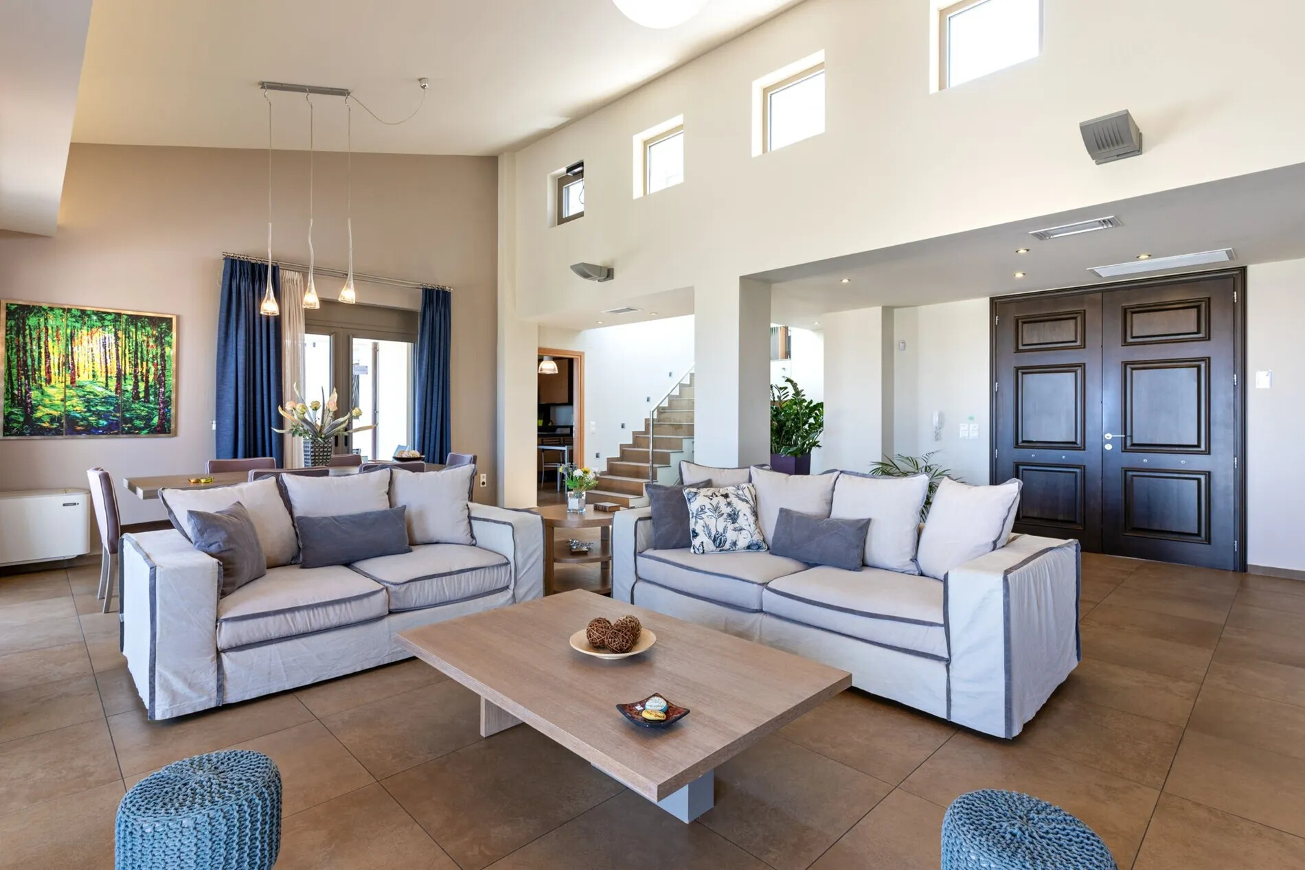 - Magnificent Layout and Design: Covering 440 sq.m. across three levels, this villa features a spacious open-plan living room with a domed ceiling and large windows, allowing sunlight and sea views to flood the space.