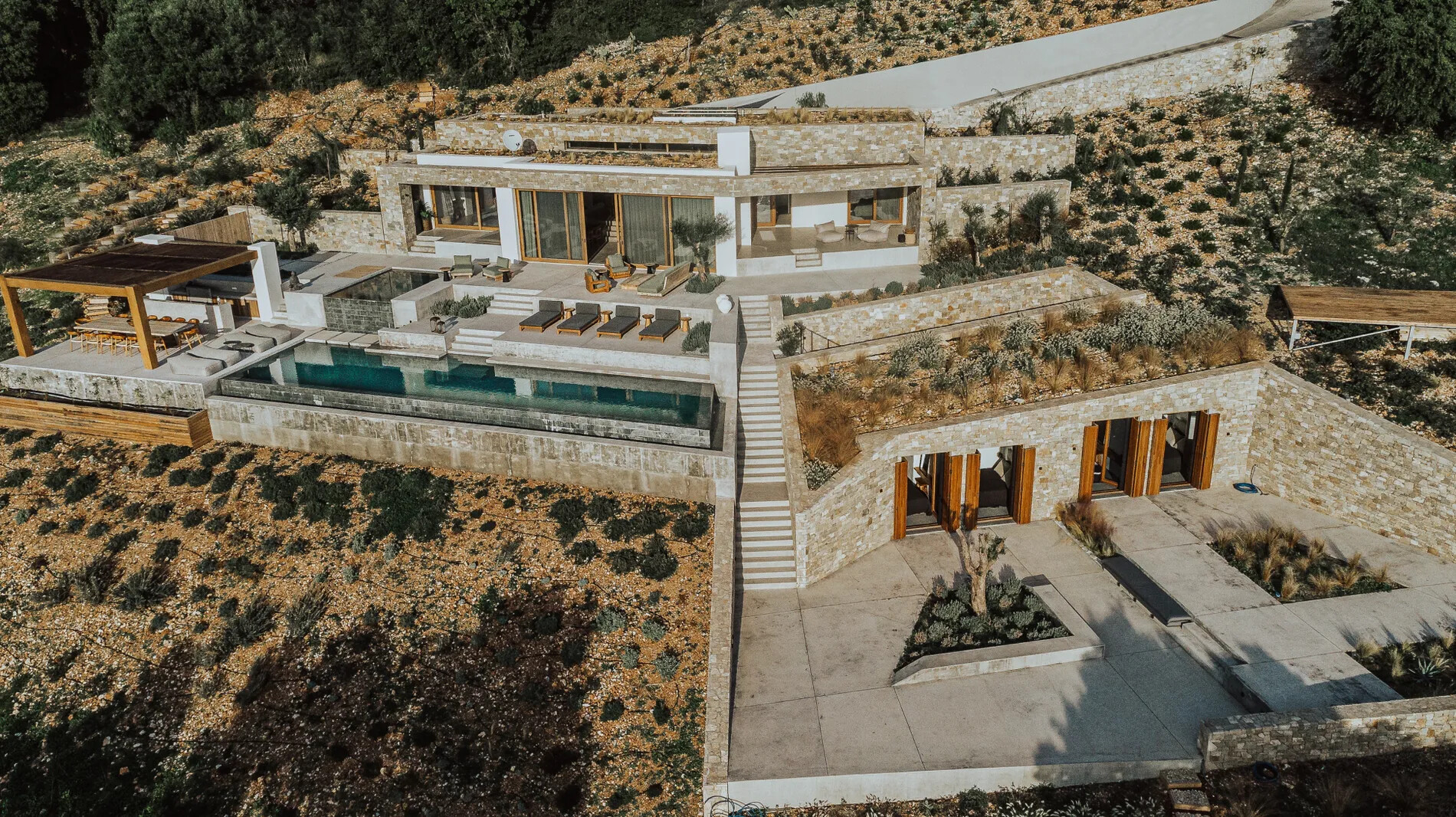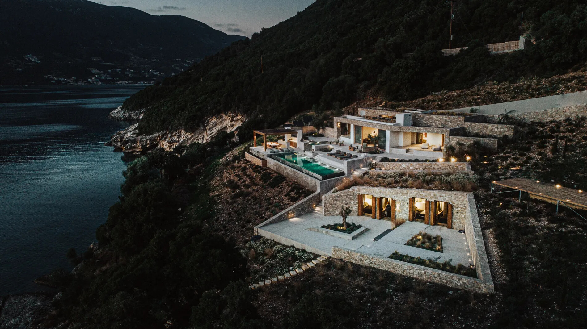 Breathtaking Sea View Villa for Sale Lefkada is a stunning residence that blends luxurious modern design with the untamed beauty of the Ionian coast. Situated on the southern edge of the island of Lefkada, this architectural gem combines stone, wood, and glass to create an outstanding living experience nestled harmoniously in the natural landscape.