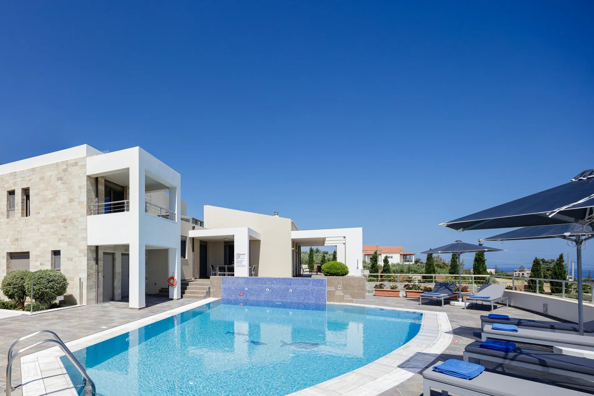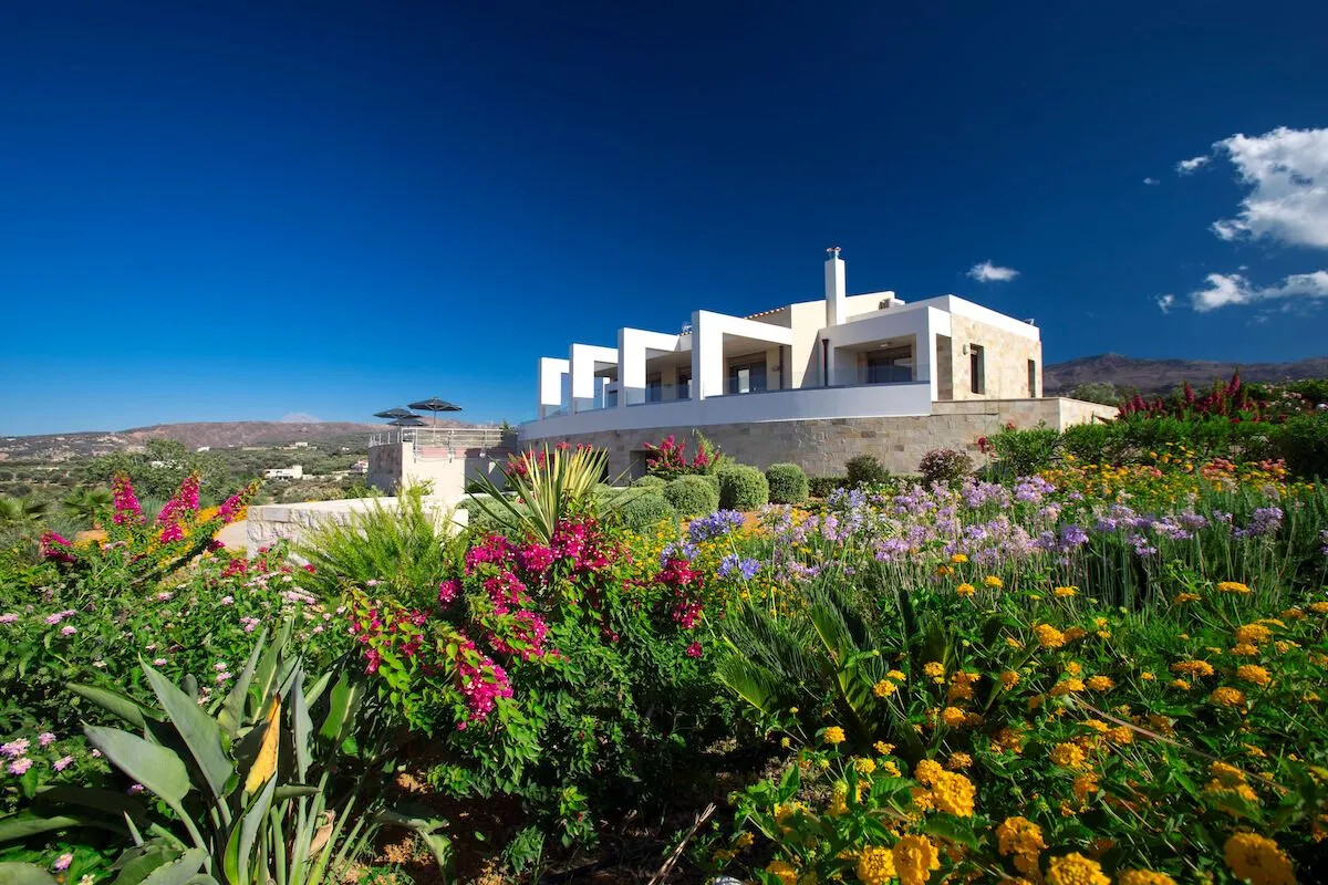 Outdoor Oasis: The impeccably designed outdoor areas feature blossomed flower beds, perfectly trimmed bushes and trees, and a vast terrace with shaded dining areas. The highlight is the 54sqm private heated swimming pool surrounded by sunbeds, perfect for relaxation under the Cretan sun. Fully equipped BBQ facilities offer the ideal setting for al fresco dining with family and friends.