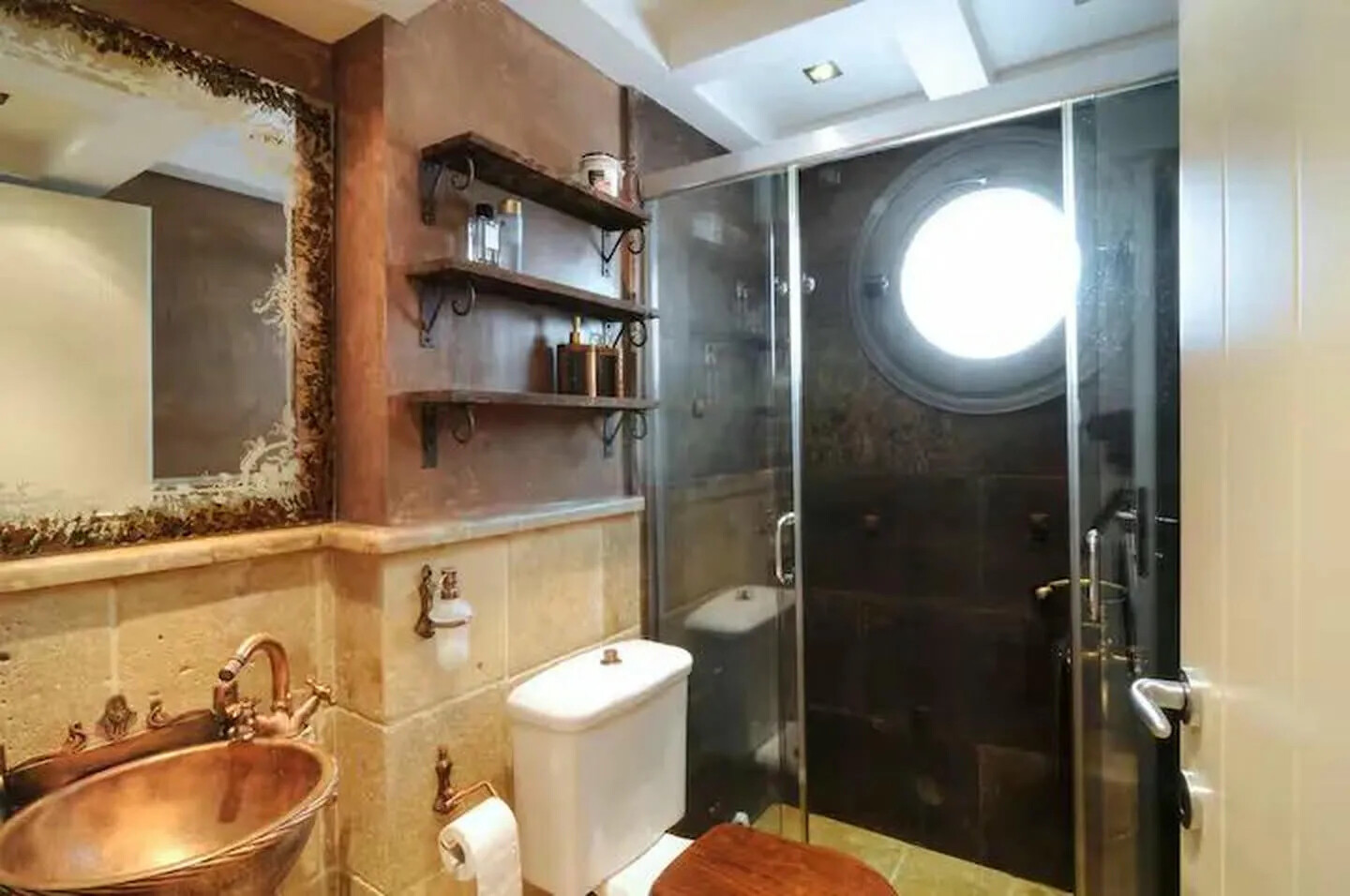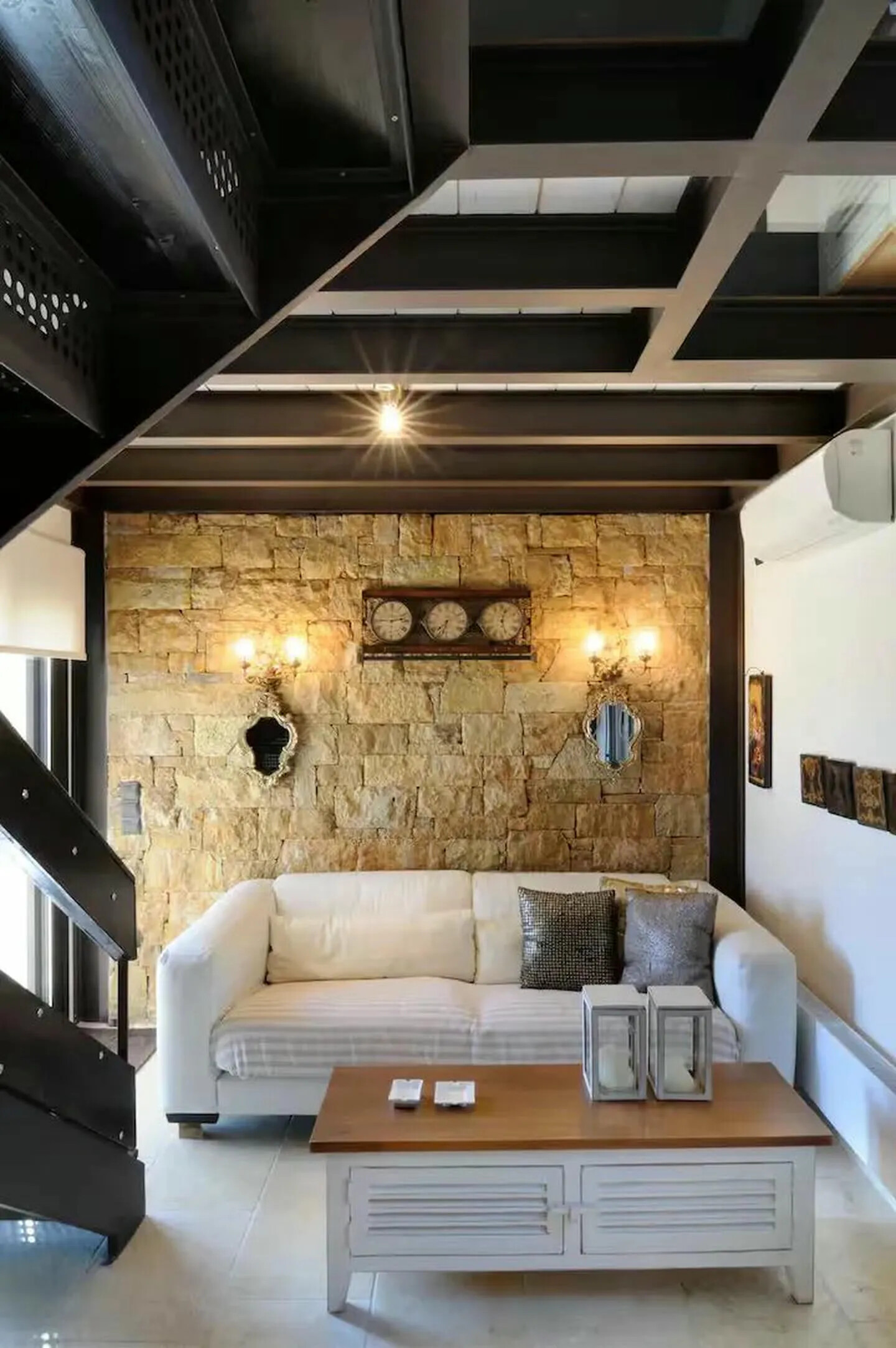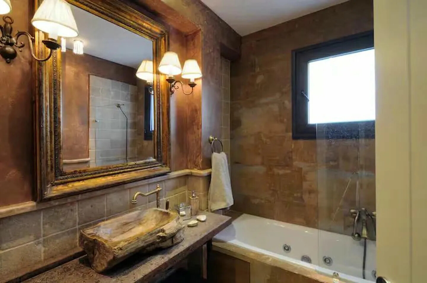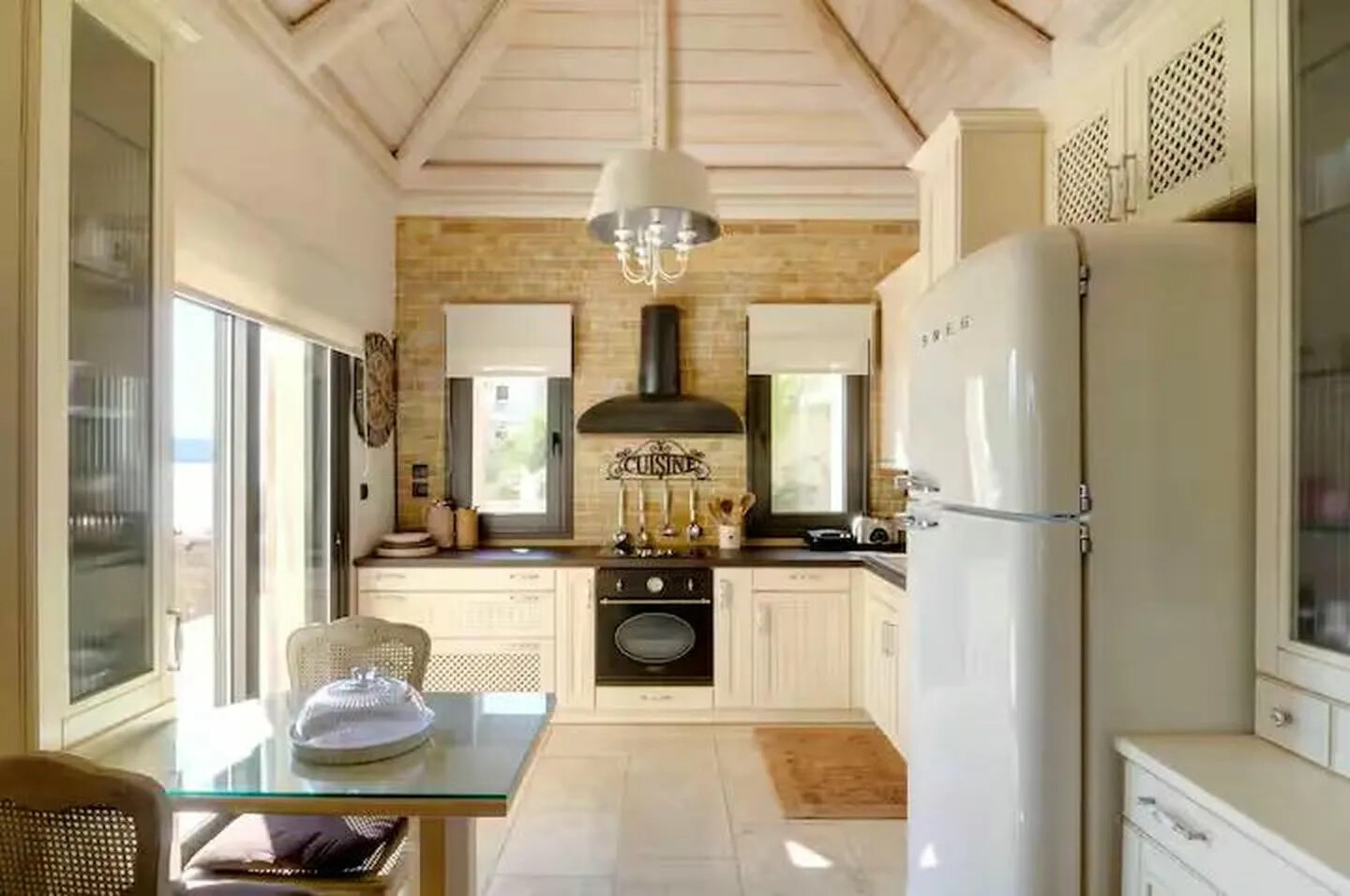 In total, Luxurious Villa with Sea View in Theologos, near Athens features five double bedrooms, all enjoying uninterrupted sea views. The interiors have been tastefully decorated with high-quality furnishings, vanilla-toned wooden ceilings, and natural stone floors that blend traditional aesthetics with modern luxury.
