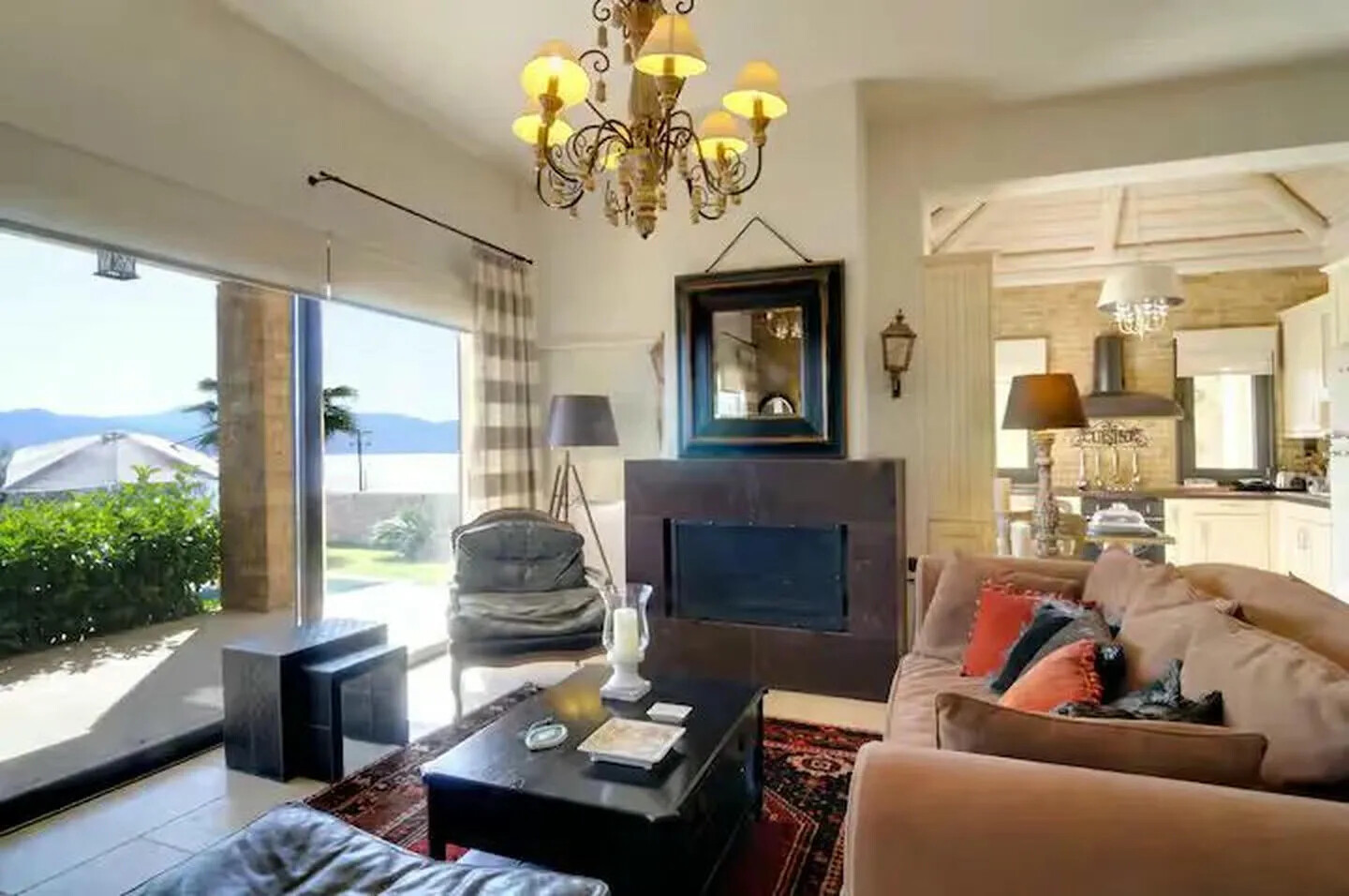- Expansive open-plan living and dining area with fireplace and panoramic sea views