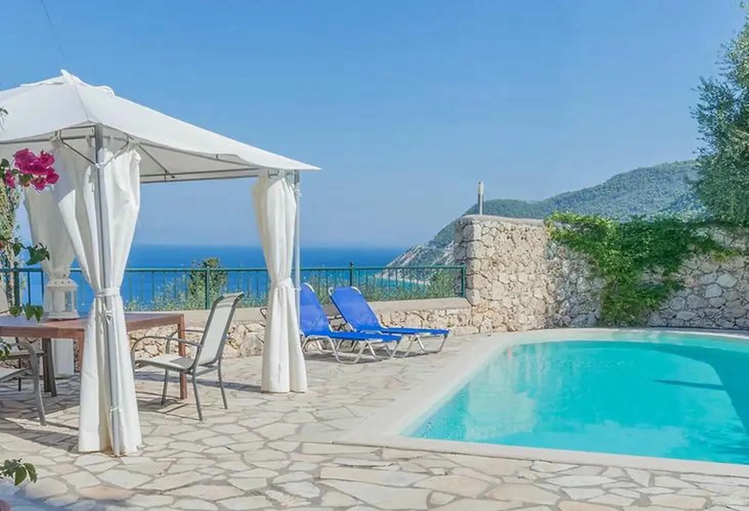 Villa in a holiday resort above the picturesque village of Ag. Nikitas with uninterrupted sea and sunset views