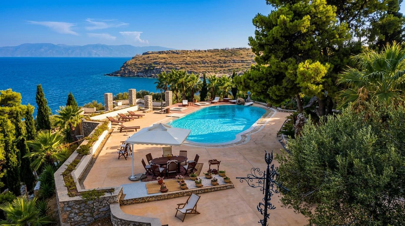 Seafront Private Property for Sale at Spetses island, Luxury Property near Athens.