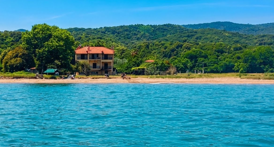 The property is easily accessible, located just 5 km from the village of Ierissos and approximately 95 km from Macedonia Airport. It offers an excellent opportunity for a variety of business ventures such as apartment rentals, a retreat center, beach services, and water sports, or could be enjoyed as a private seaside paradise.