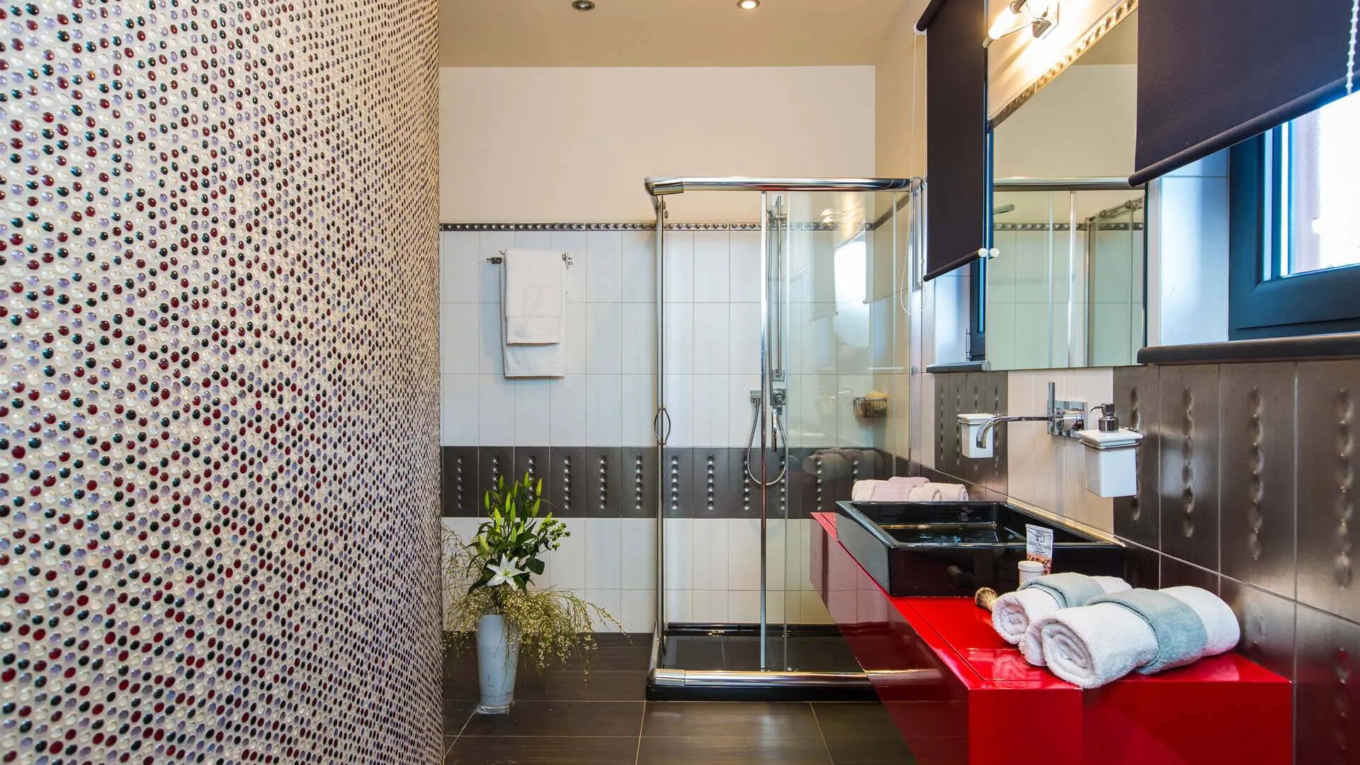 • Luxurious bathrooms, including a steam bath and shower cabin with hydromassage features