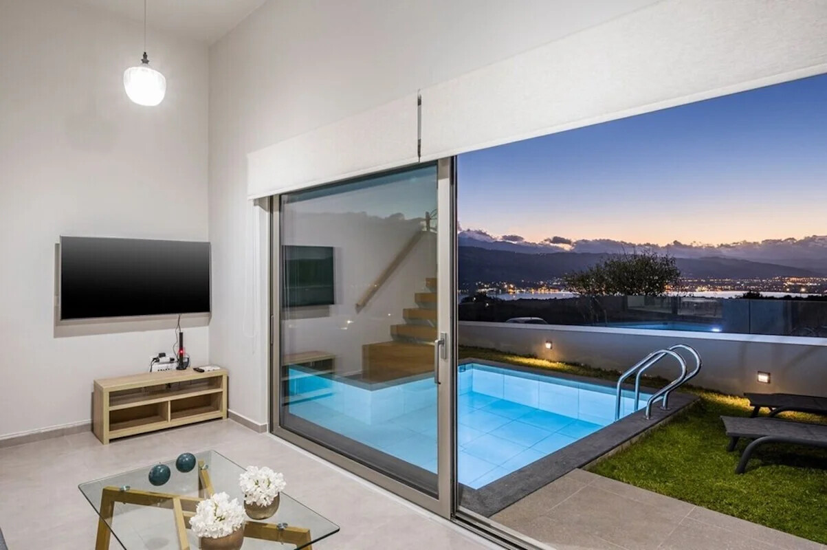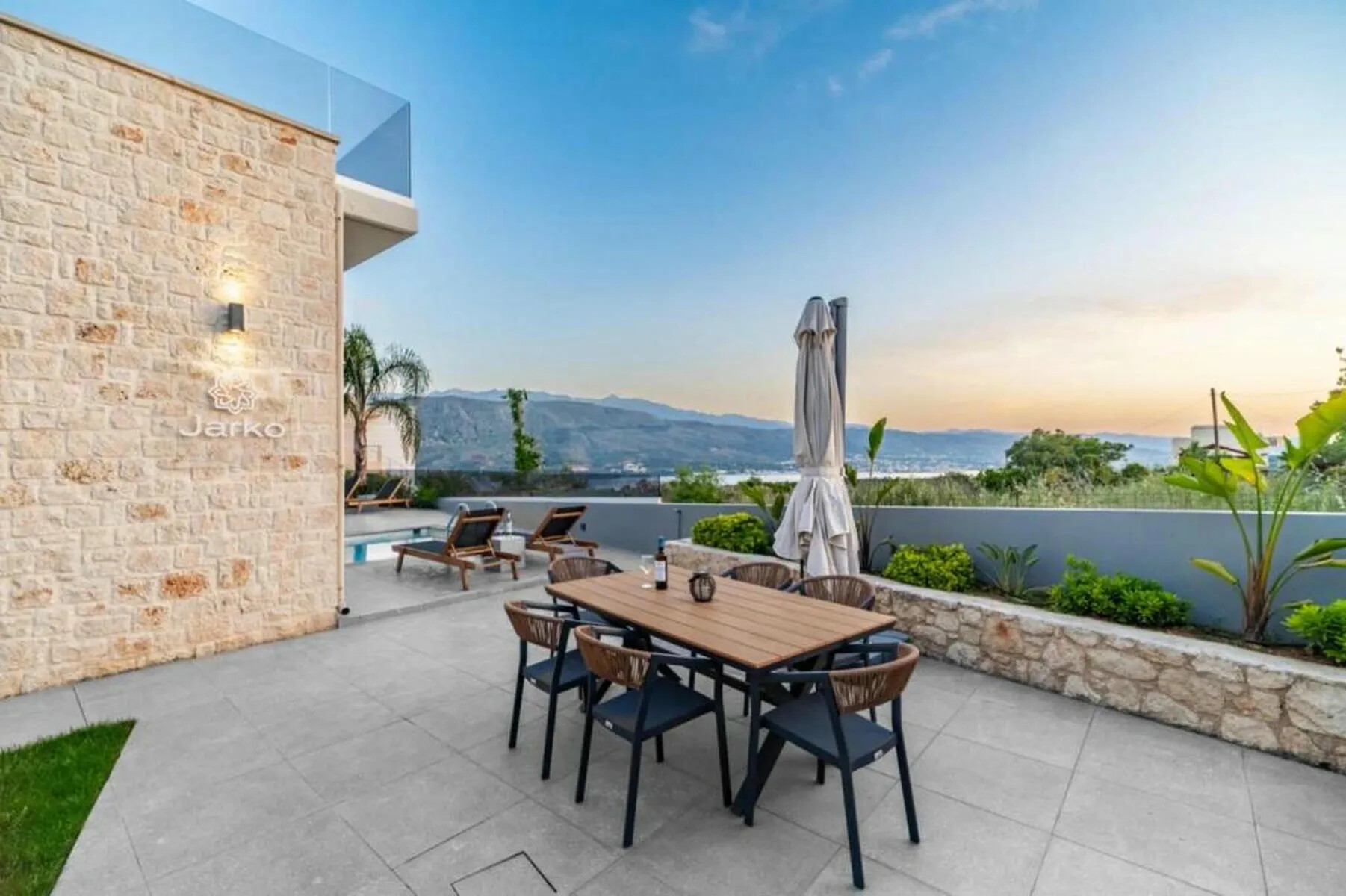 Two Serene Seaview Villas for Sale in Akrotiri, Crete, offer unobstructed views of Souda Bay and the majestic Cretan mountains. Built in 2020 to the highest standards, the villas can be enjoyed as independent residences or easily unified into a single, spacious estate.