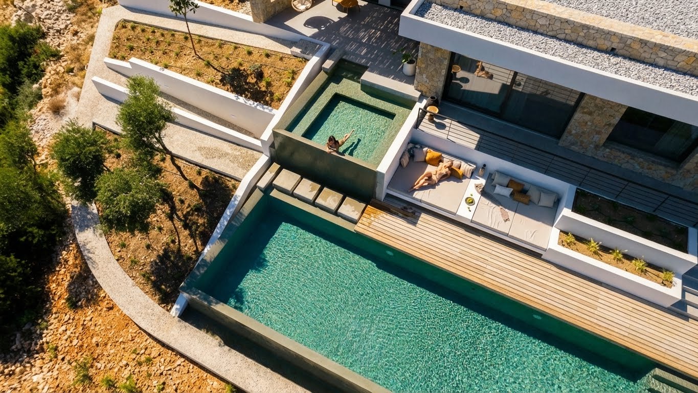 The outdoor space of this villa is truly spectacular, designed for seamless indoor-outdoor living and ultimate relaxation.