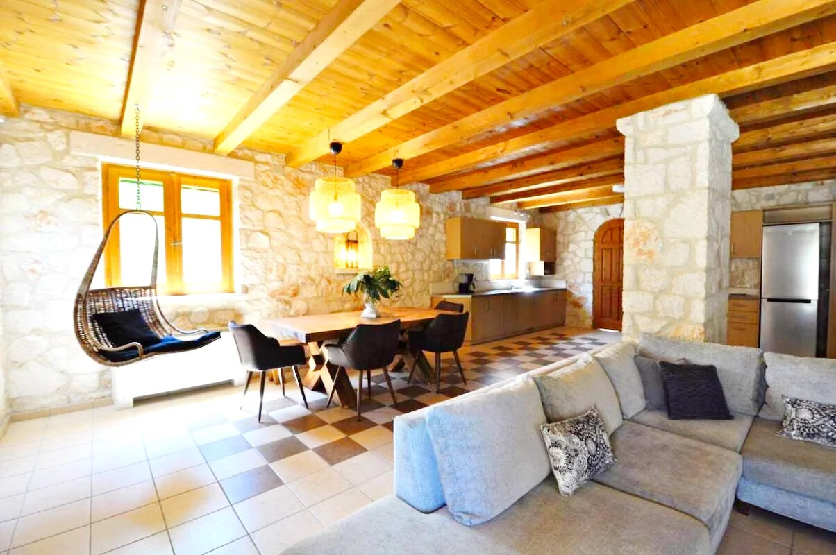Traditional stone villa in the Akrotiri area, just 6 minutes from the town center and 6 minutes from Tsilivi beach. Located within a villa complex built amidst olive groves, this 157 sqm property features 3 bedrooms, 2 bathrooms, and 1 WC. It boasts a private pool, with the living room and kitchen on the ground floor and three bedrooms and two bathrooms on the upper floor. Enjoy sea views from the balconies. The villa comes fully furnished and equipped, including two parking spaces.