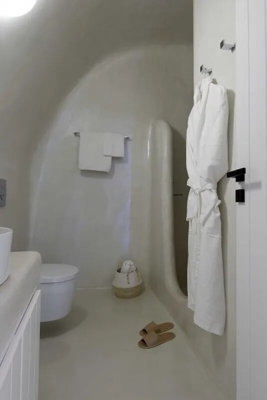 This stunning cave house for sale in Imerovigli, Santorini maintains its classic charm with curved walls and built-in furnishings that reflect Cycladic aesthetics. The open-plan living room and kitchen offer a bright and airy atmosphere, while the bedrooms provide cozy retreats designed for rest and relaxation.