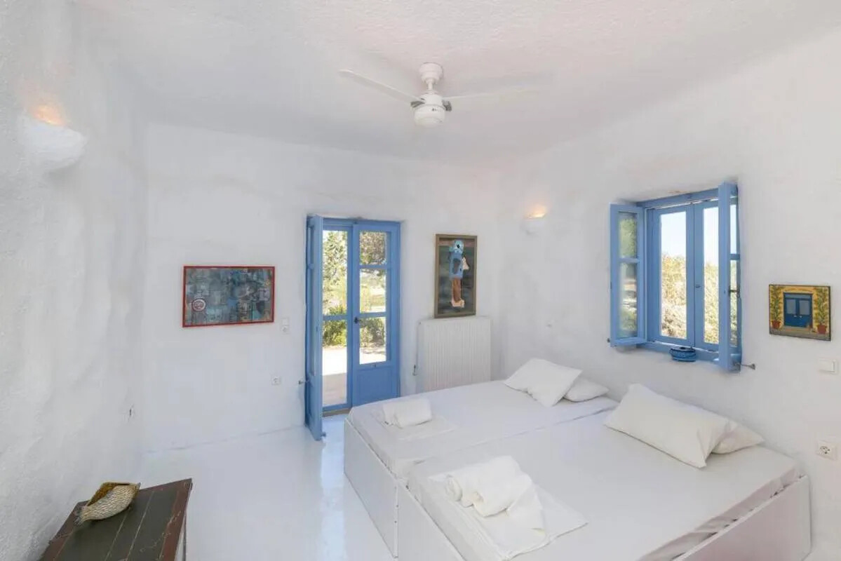 This stunning villa is situated in the southern region of Paros, offering residents an unobstructed panoramic vista of the Makry Miti coastline and the Aegean Sea. Spanning approximately 4,400 square meters, the property is enveloped by equally expansive plots of land. Facing the sea, a nature reserve safeguards against further development, ensuring perpetual tranquility and privacy. The charming fishing village of Alyki, renowned for its waterfront tavernas and abundance of shops, is just a short drive away. Additionally, Parikia, the island’s main town, boasts an even broader array of shops and restaurants, reachable within a mere 12-minute drive.
