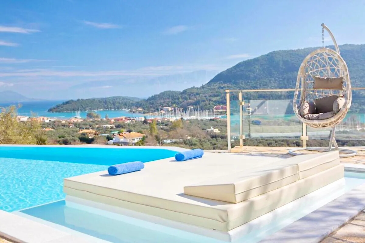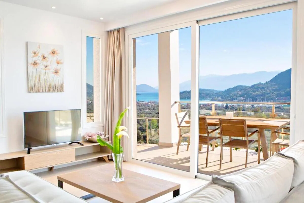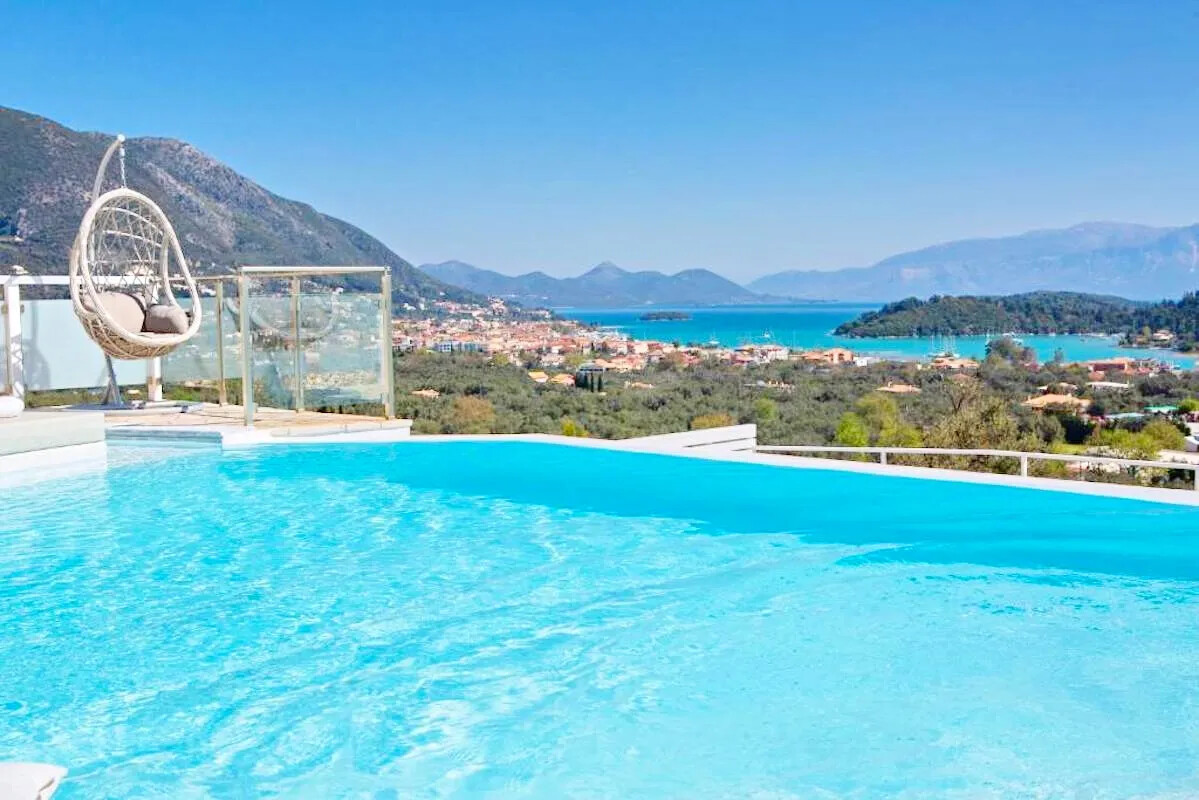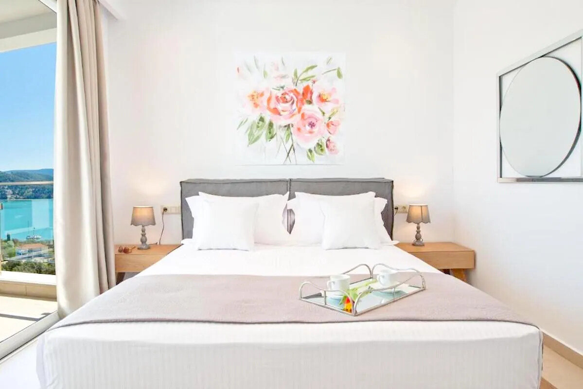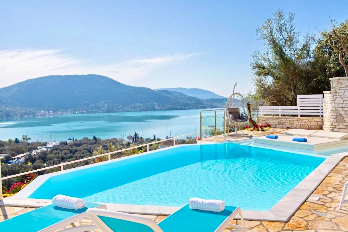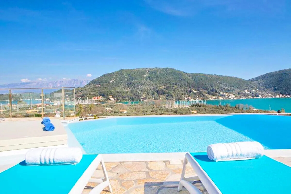 • Views: Panoramic views of Vlycho Bay, Nydri, and Skorpios.